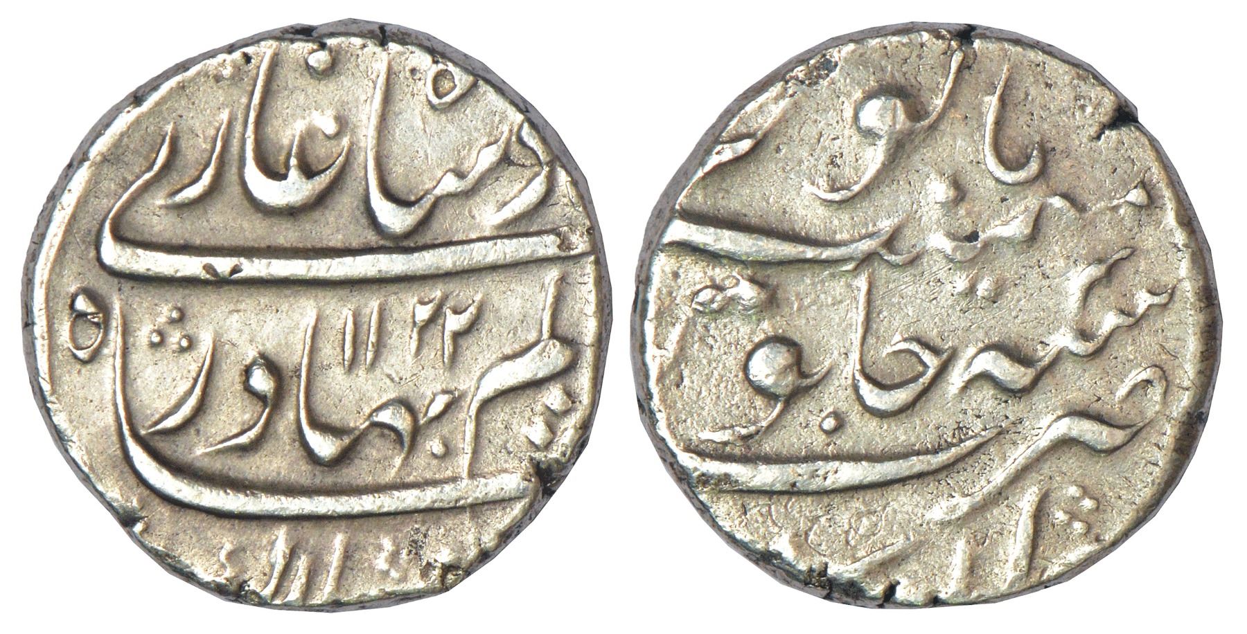 Shah Alam Bahadur (1707-1712 AD), silver rupee, Arkat mint, AH 1122/RY 4, KM 348.9, 11.48g.