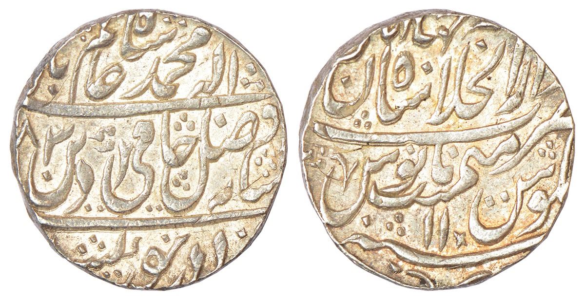 Shah Alam II (1759-1806 AD), silver rupee, Dar ul-Khilafat Shahjahanabad mint, 'Hami-e-din' couplet, AH (11)83/RY 11, KM 709.1, 11.29g.