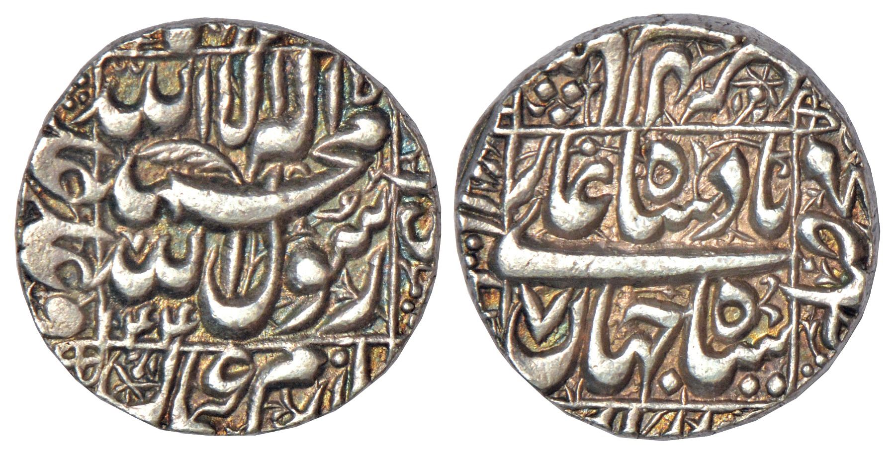 Shah Jahan (1628-1658 AD), silver rupee, Multan mint at left quadrant, AH 1044/RY 7, KM 235.19, 11.47g.