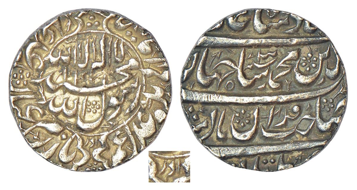 A variety that has recently come to notice, this coin has the name of the Ilahi month added in between the two mihrab-shaped cartouches on either side of the Shahada on obverse. Two more instances - Aban (Zeno #322661) and Mihr (Zeno #316623) - are also noted but not published or remarked in any Mughal catalogue so far.