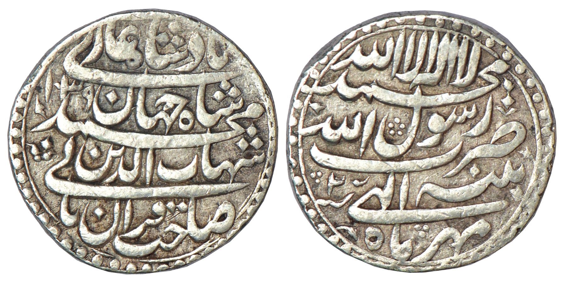 Shah Jahan (1628-1658 AD), silver rupee, Patna mint, AH 1039/RY 3, month Mihr, with emperor's full name and title, KM 224.16, 11.34g.
