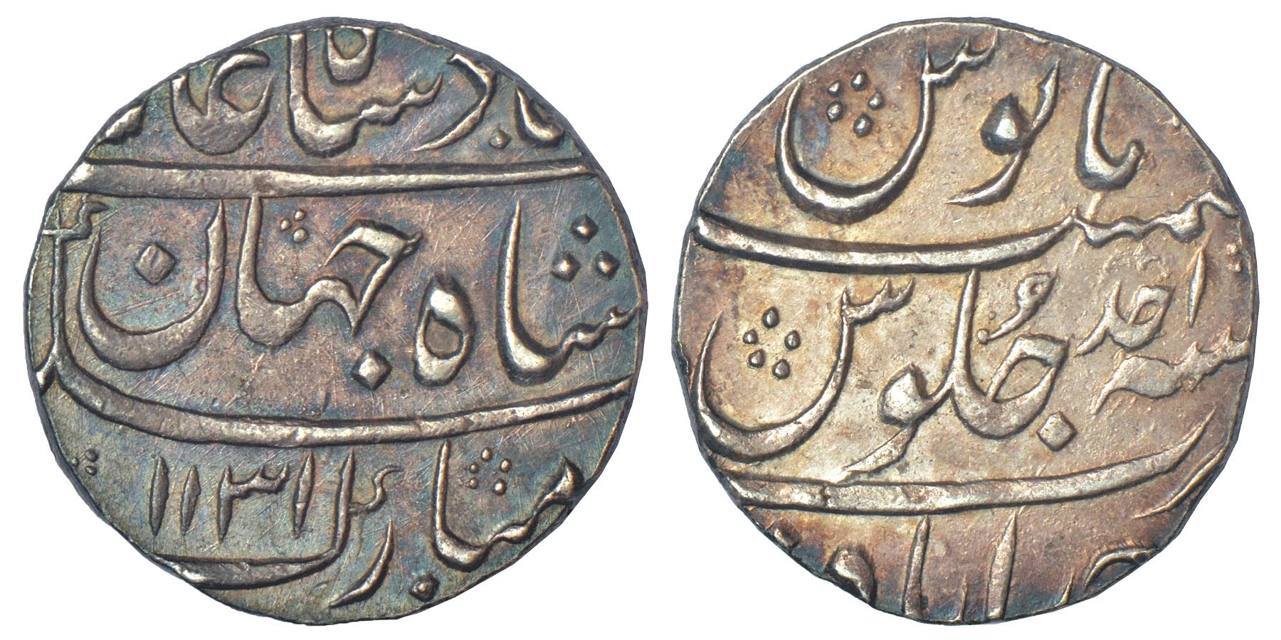 Shah Jahan II (1719 AD), silver rupee, Ahmadabad mint, AH 1131/RY Ahd, KM 415.1, 11.14g.