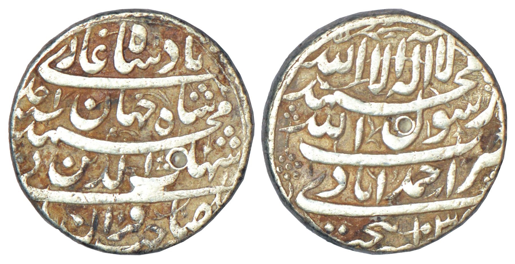Shah Jahan (1628-1658 AD), silver rupee, Ahmadabad mint, AH 103(8)/RY Ahd, with emperor's full name and title, both sides legend in four line, KM 222.2, 11.38g.