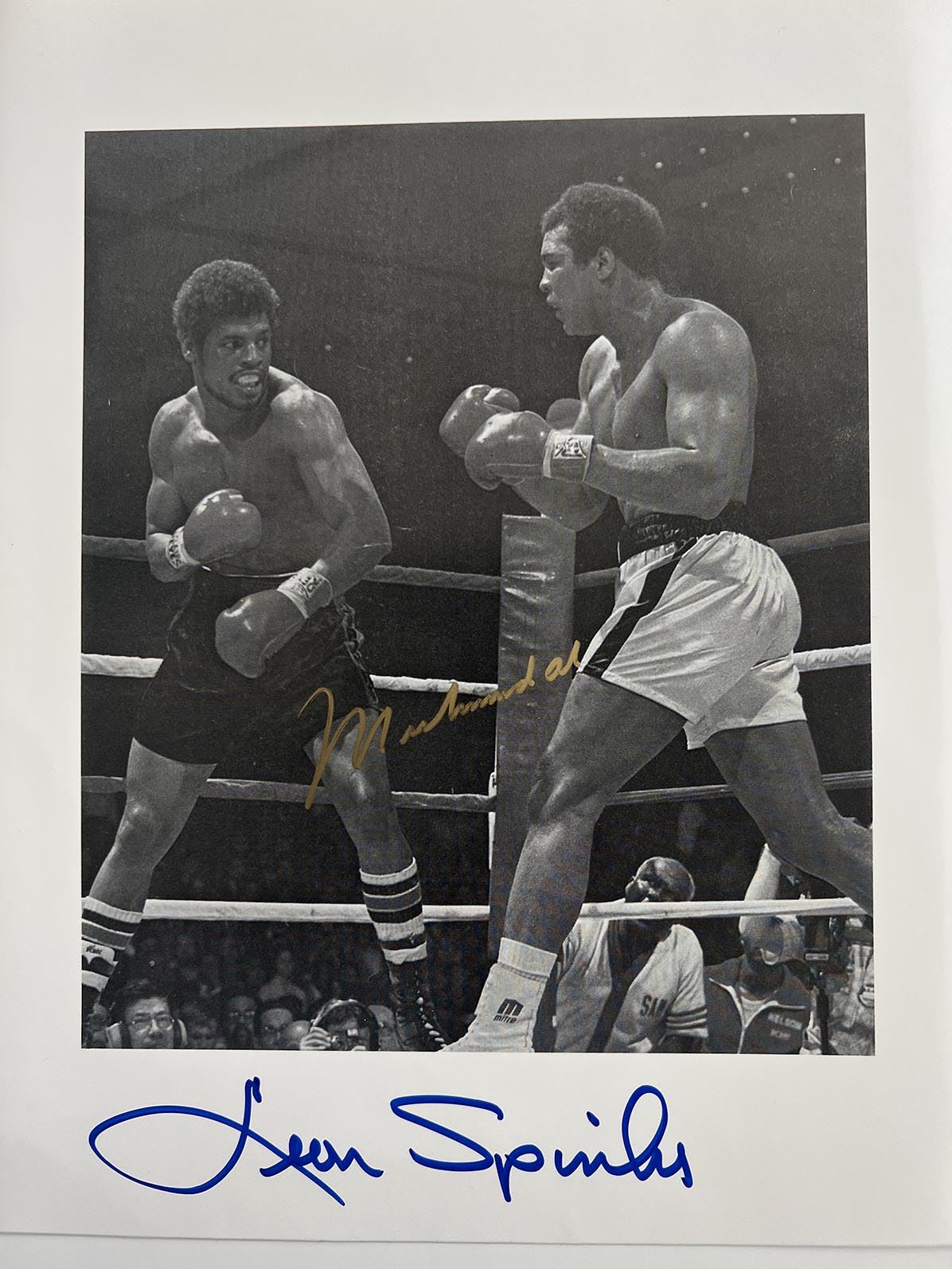 Muhammad Ali and Leon Spinks signed photo. 8x10 inches