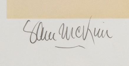 (Disneyland, 2000) A multi-signed limited edition "Disneyland Map Triptych" print. Released to commemorate Disneyland's 45th anniversary, the piece features 1954, 1958 and 2000 Park Map renderings signed by their original artists: Peter Ellenshaw, Sam McKim, and Nina Rae Vaughn. This trio of Park cartographers were joined by fellow Imagineers Tony Baxter, Blaine Gibson, and John Hench, who also signed the piece for an event at The Disney Gallery on Saturday, July 15, 2000. Each map measures 9.5"x12" inside the 12.75"x39.25" frame. It is in very good condition. The piece has been hand-numbered 206/250, retaining an embossed Disneyland 45 Years of Magic seal at lower right and Certificate of Authenticity.