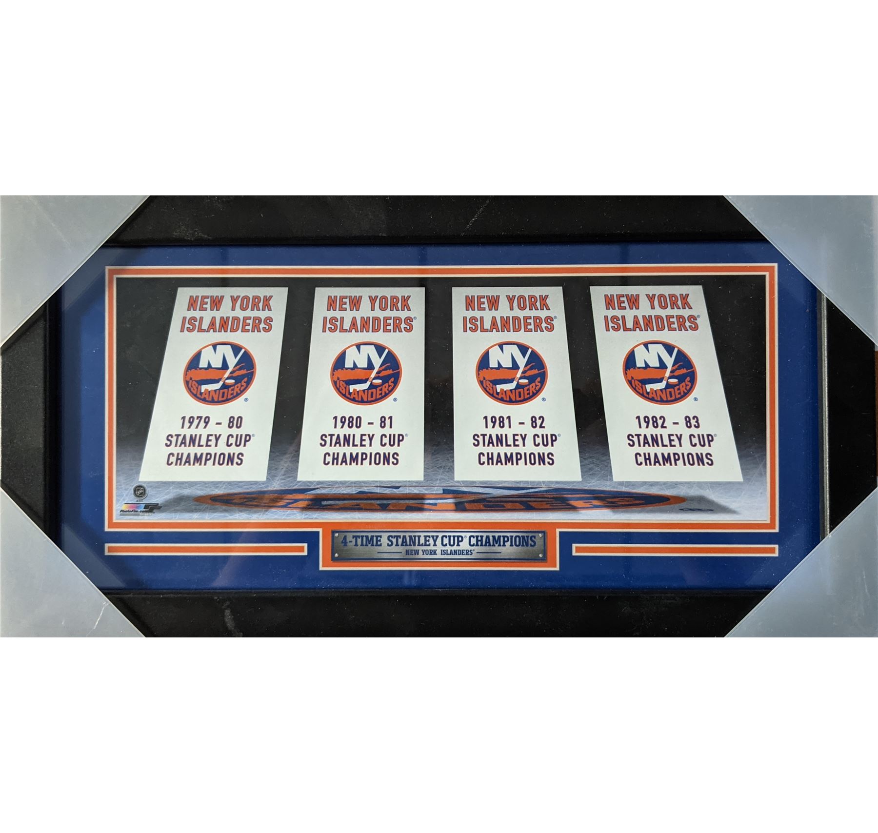 N.Y. Islanders Stanley Cup Banners Framed Photo - 7x13 inches