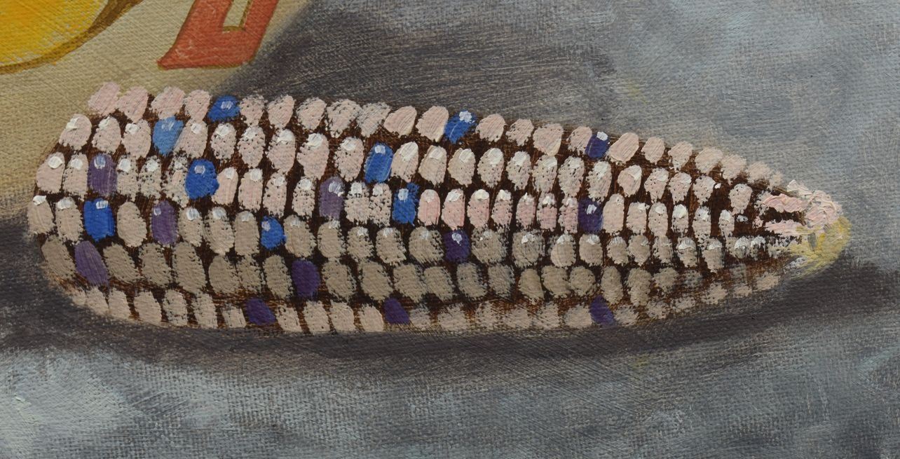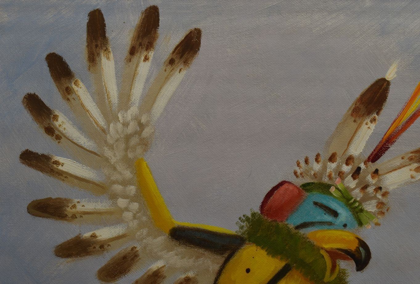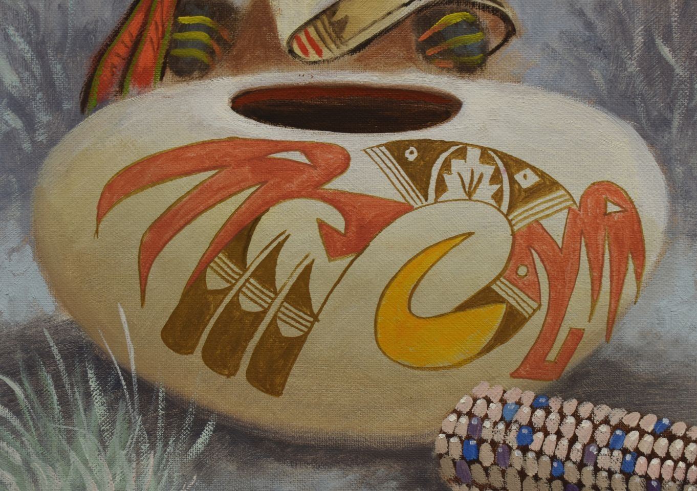 1997 Navajo Indian, hand painted on canvas board depicting eagle dancer and pot signed R Yellowhair 18" x 24"