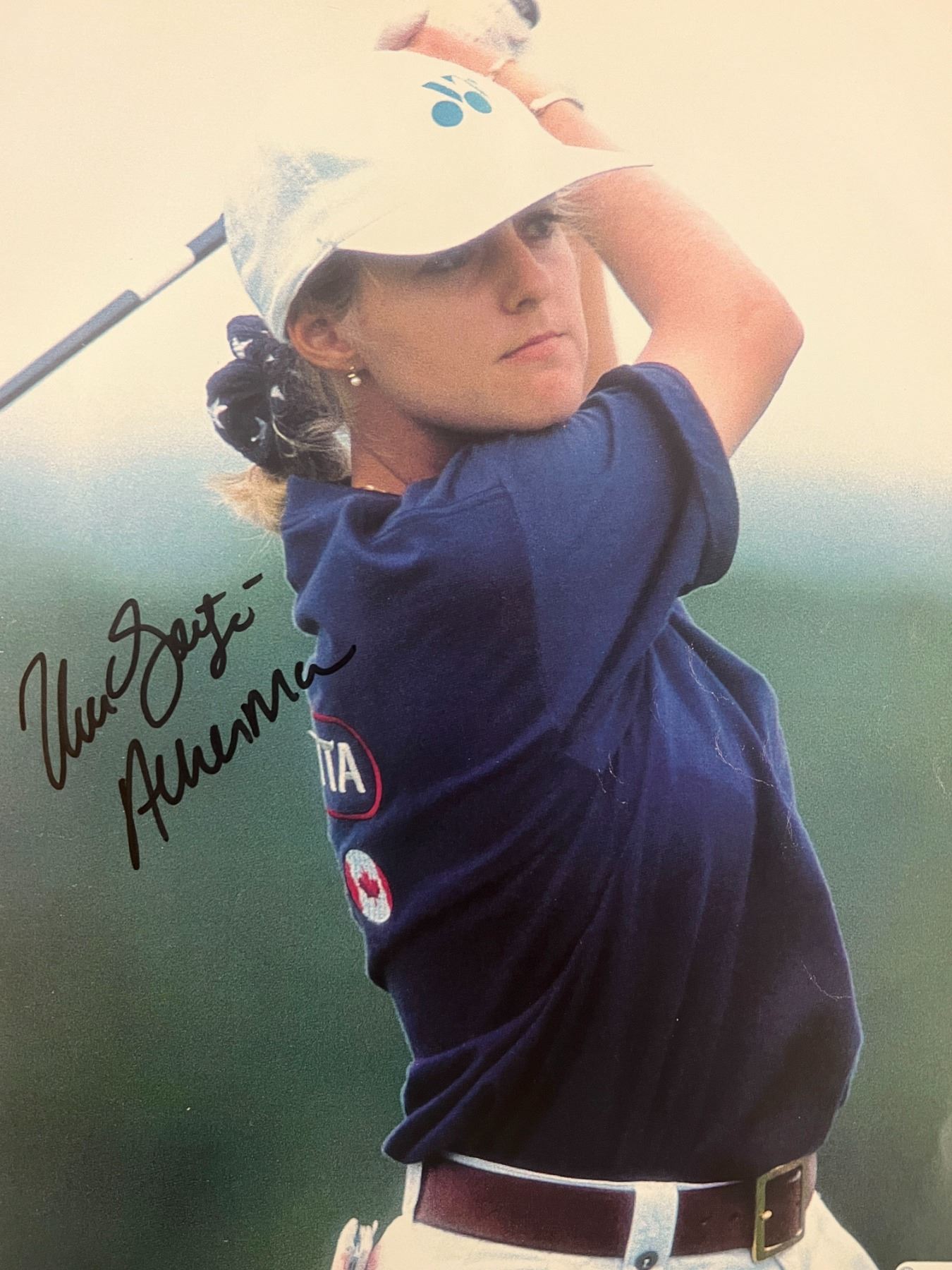 NCAA golfing champion Vicki Goetze signed photo. Global authenticated. 9x12 inches