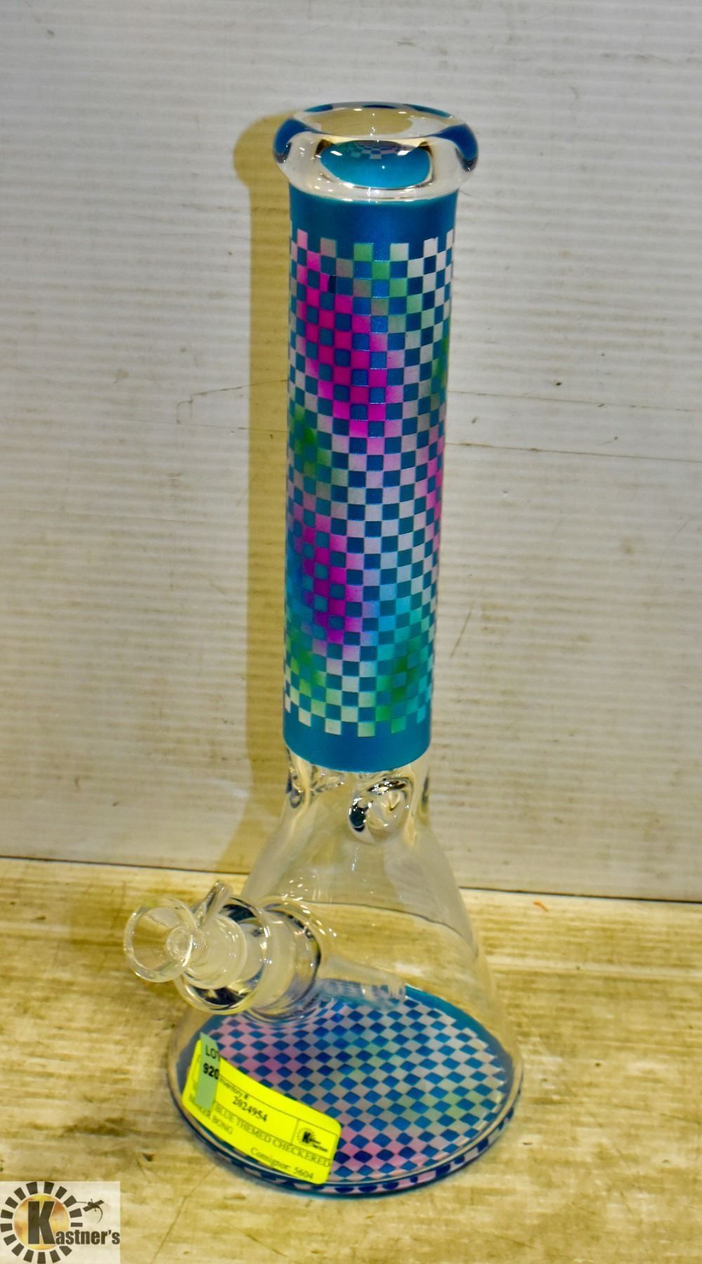 NEW 14" BLUE THEMED CHECKERED BEAKER BONG