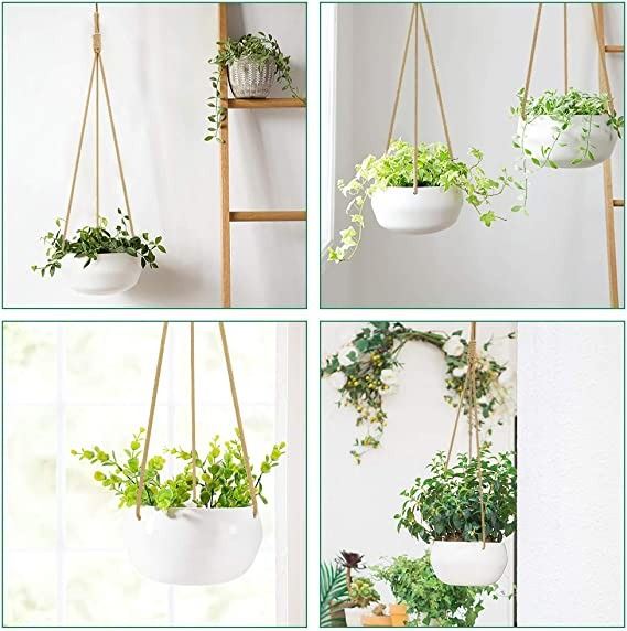 NEW 2 PACK OF WHITE HANGING PLANTERS, GOLDEN ROPE