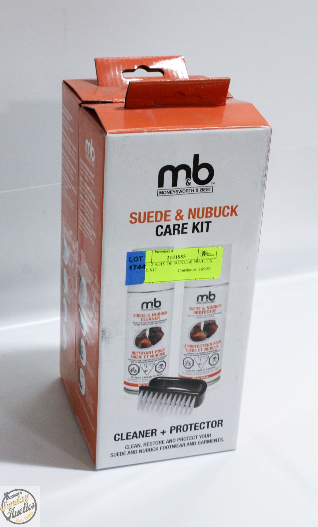 NEW - 2 SETS OFMONEYSWORTH AND BEST 3 PIECE SUEDE & NUBUCK CARE KIT CLEANER, PROTECTOR, NYLON BRUSH **ALL ITEMS MUST BE REMOVED BY 5PM SATURDAY, DECEMBER 13TH 2025. ALL REMAINING ITEMS WILL BE SUBJECT TO A $6.00 PER DAY STORAGE CHARGE. ANY ITEMS REMAINING AFTER MONDAY, DECEMBER 29TH 2025 WILL BE CONSIDERED FORFEITED. NO REFUNDS WILL BE ISSUED FOR FORFEITED ITEMS. TO SCHEDULE A PICK UP APPOINTMENT CLICK HERE