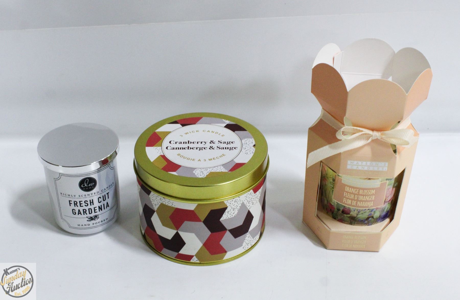 W/BOUGIE A 3 MECHE 3-WICK CRANBERRY & SAGE LIDDED & DW HOME FRESHCUT GARDENIA LIDDED **ALL ITEMS MUST BE REMOVED BY 5PM SATURDAY, JANUARY 24TH 2026. ALL REMAINING ITEMS WILL BE SUBJECT TO A $6.00 PER DAY STORAGE CHARGE. ANY ITEMS REMAINING AFTER MONDAY, FEBRUARY 9TH 2026, WILL BE CONSIDERED FORFEITED. NO REFUNDS WILL BE ISSUED FOR FORFEITED ITEMS. TO SCHEDULE A PICK UP APPOINTMENT CLICK HERE