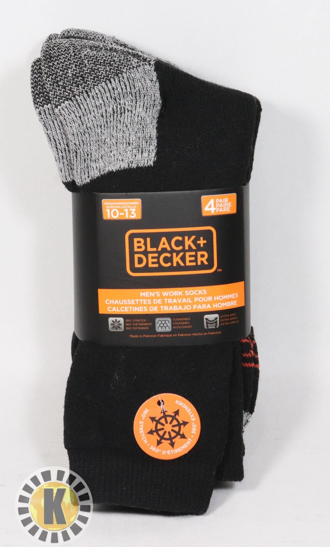 NEW 4 PACK MENS BLACK + DECKER WORK SOCKS