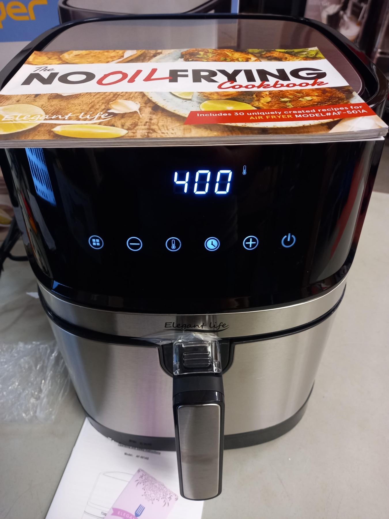INCLUDES RECIPE BOOK, INSTRUCTION MANUAL AND ALL PARTS, TOUCHSCREEN FUNCTION WITH 8 COOKING PRESETS, SLEEK SILVER AND BLACK DESIGN, TESTED, AMZ SES