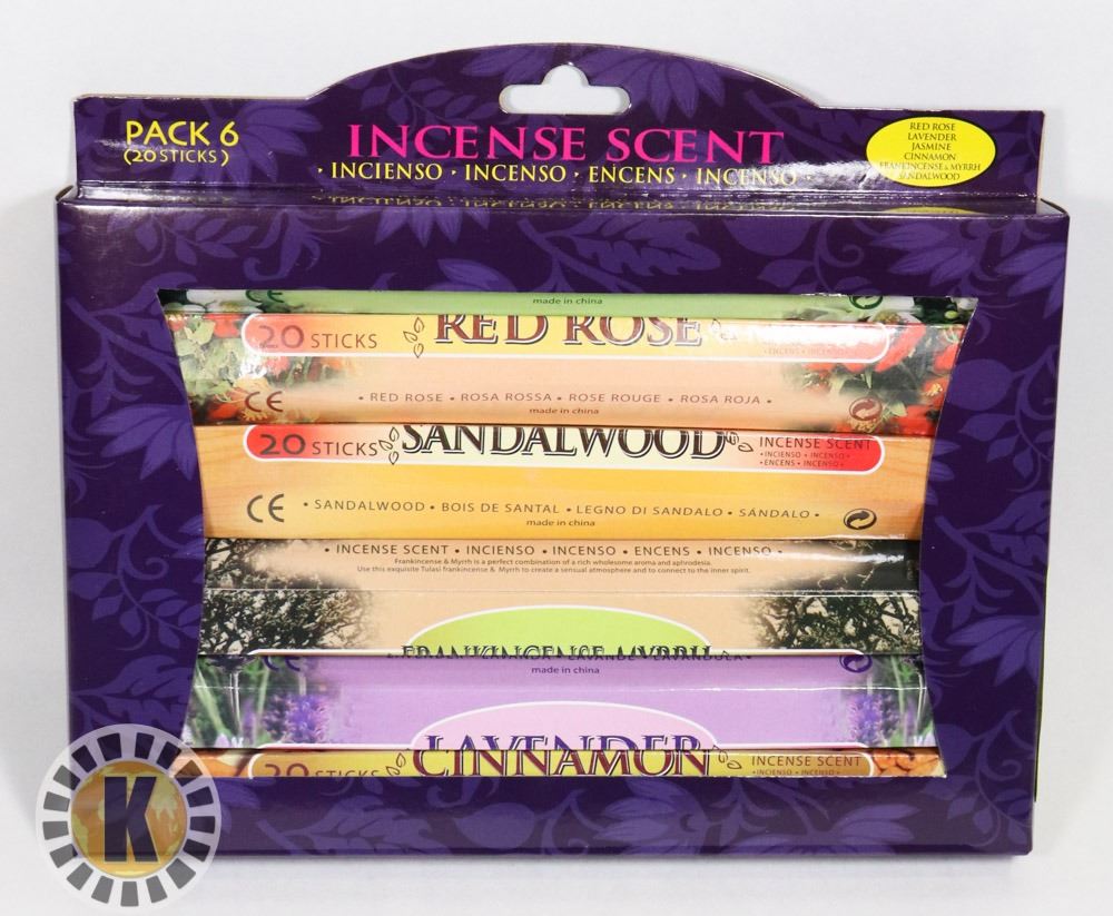 NEW 6PK ASSORTED INCENSE, 20 STICKS