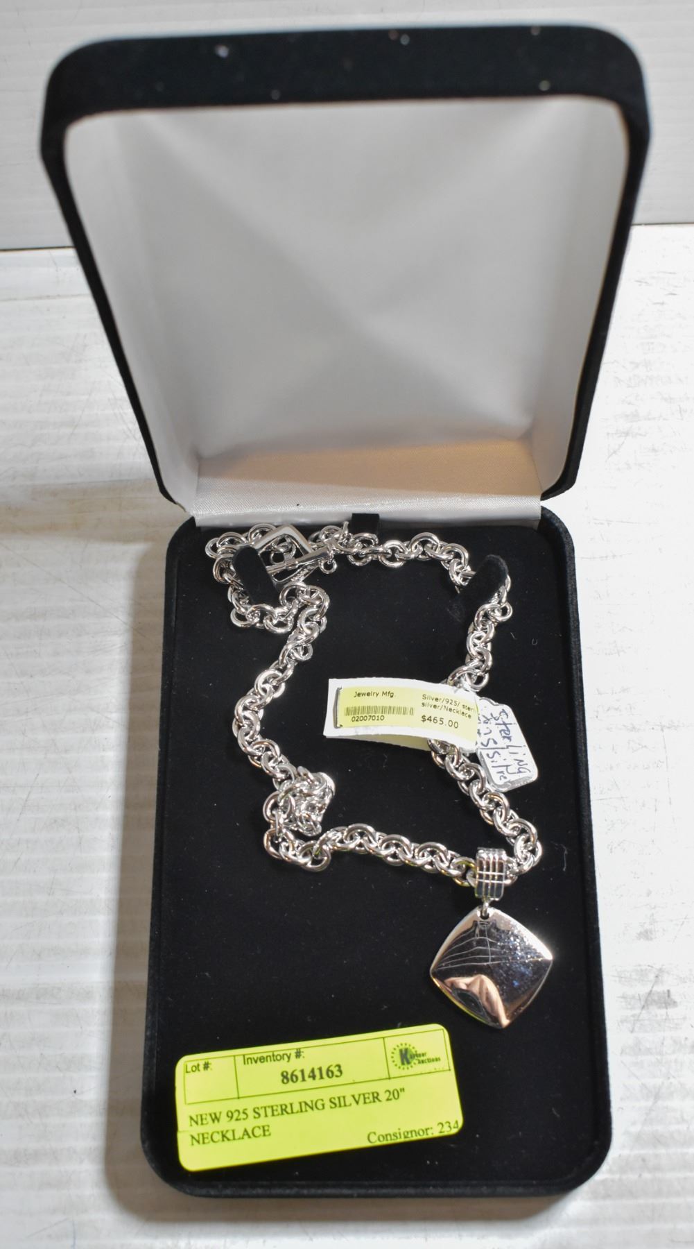 NEW 925 STERLING SILVER 20" NECKLACE, ITALY MADE "DOLLAN BULLOCK " BRAND NAME, HIGH QUALITY FINISH, WEIGHT 89.5G, RETAIL $465.00, BLACK VELVET CASE.- NONE
