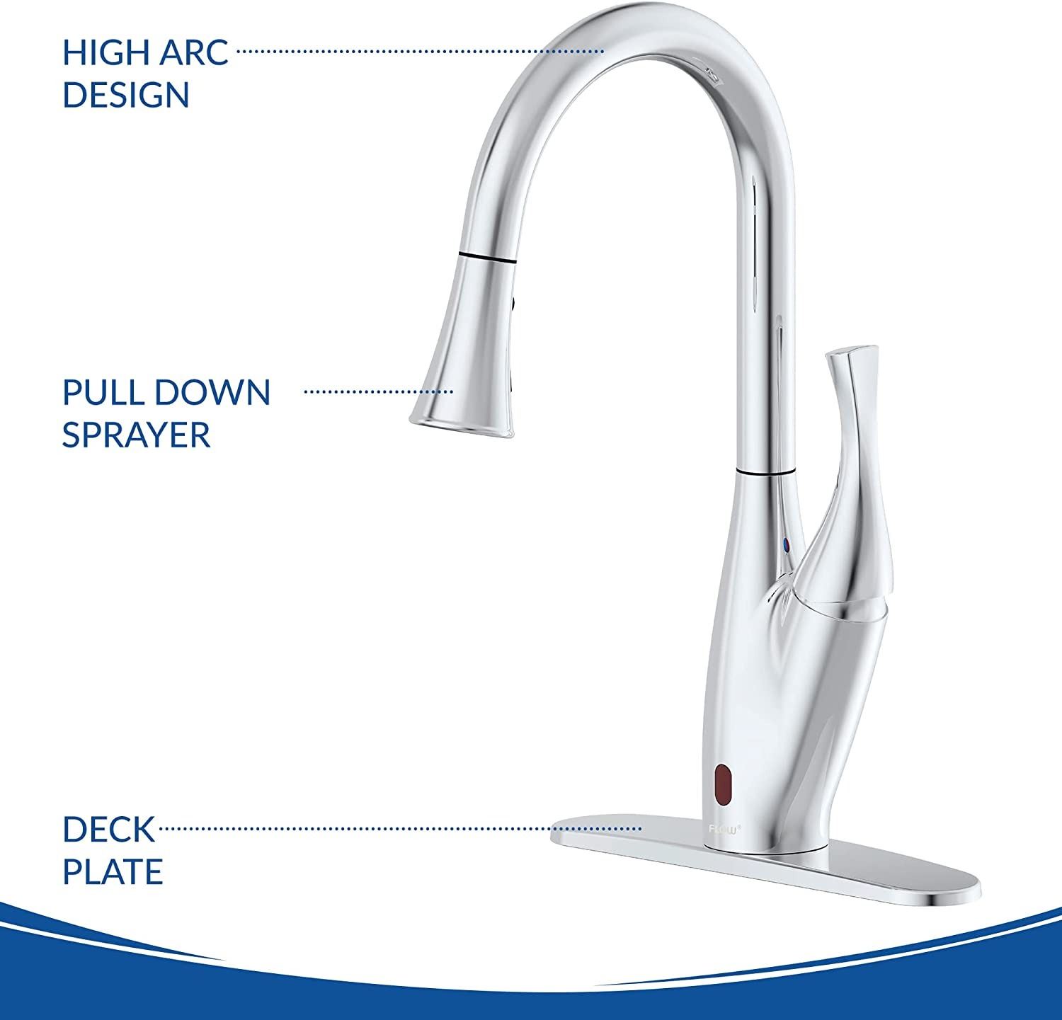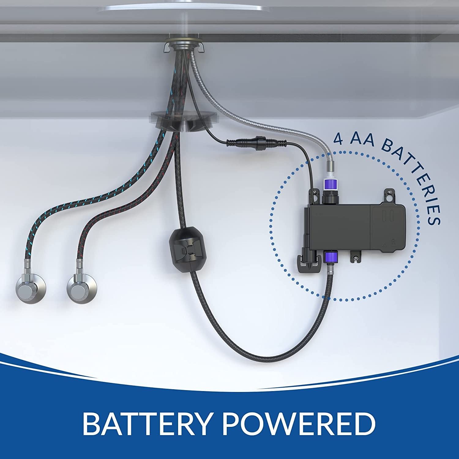 FAUCET SET, TOUCHLESS DESIGN, DUAL SPRAY HEAD, EASY DIY INSTALL, BATTERY OPERATED SENSOR, ALL PARTS CONFIRMED AND WERE SEALED, MANUAL INCLUDED, ORIGINAL PACKAGING, AMZ SES, SLIGHT DAMAGE TO OUTER ORIGINAL BOX
