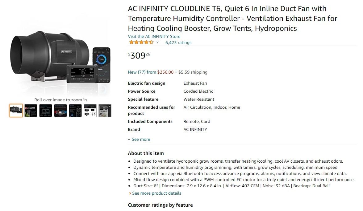 W/ HUMIDITY CONTROL, FOR GROW TENTS, HYDROPONICS