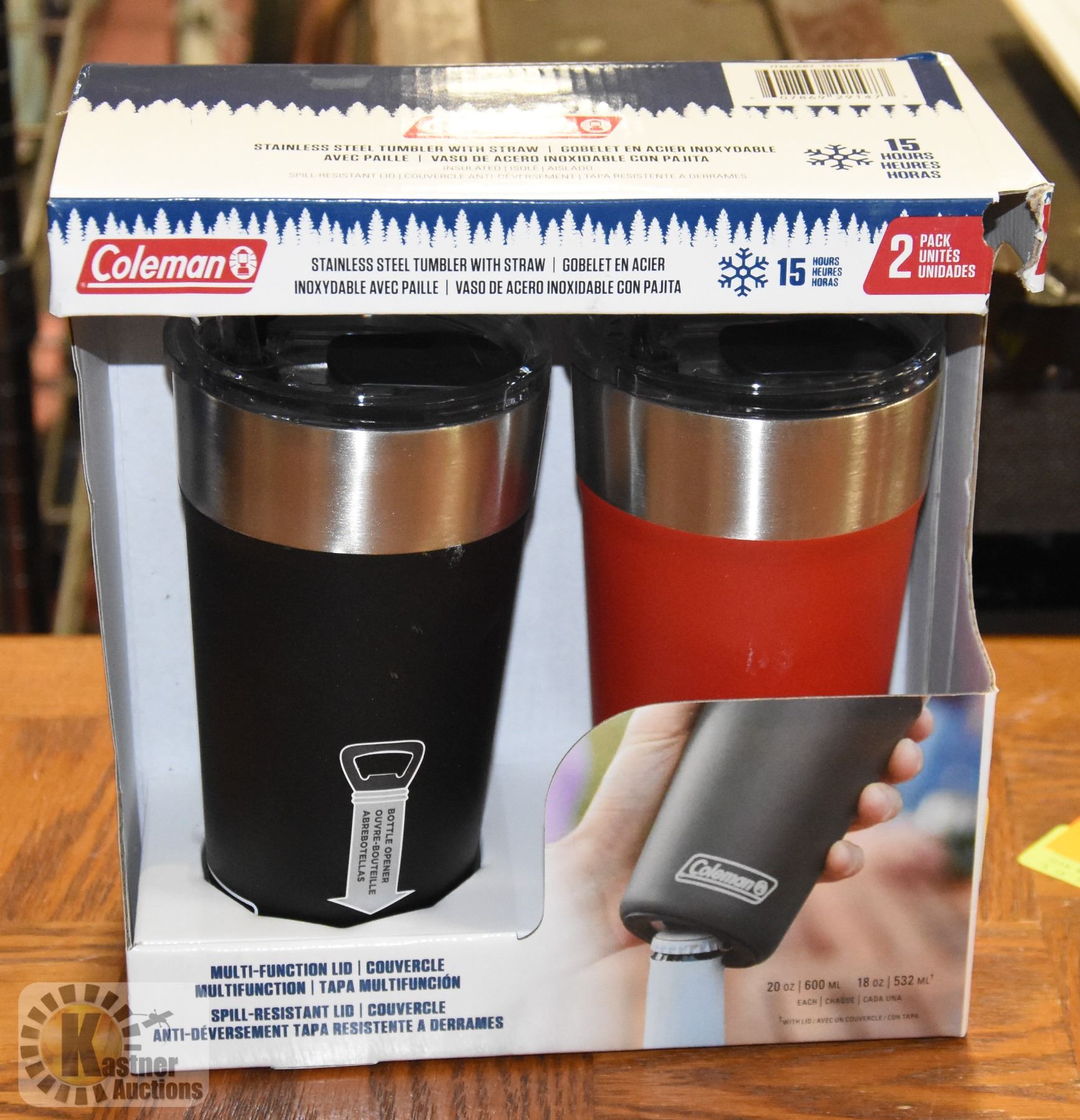 NEW COLEMAN ST. STEEL TUMBLER SET W/ STRAWS