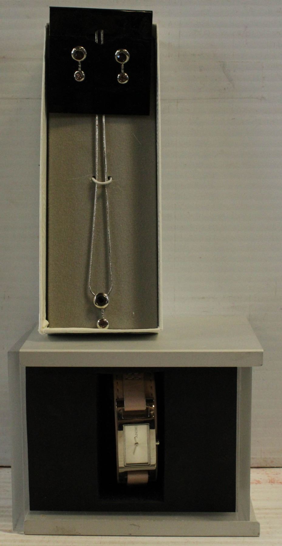 LEATHER WATCH PINK W/NEW TRISTAN NECKLACE & MATCHING EARRINGS
