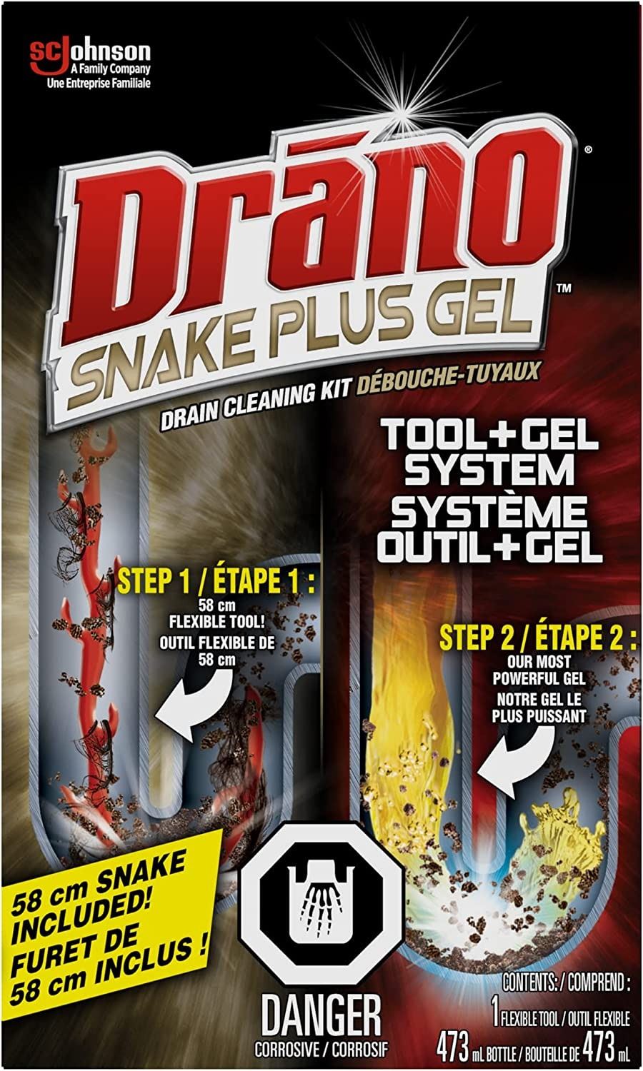 NEW DRANO SNAKE PLUS GEL DRAIN CLEANING KIT