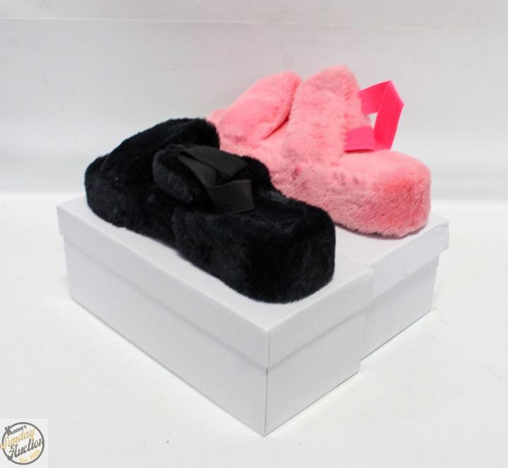 NEW FUZZY WOMEN'S SLIPPERS 1PINK 1BLACK SIZE 9