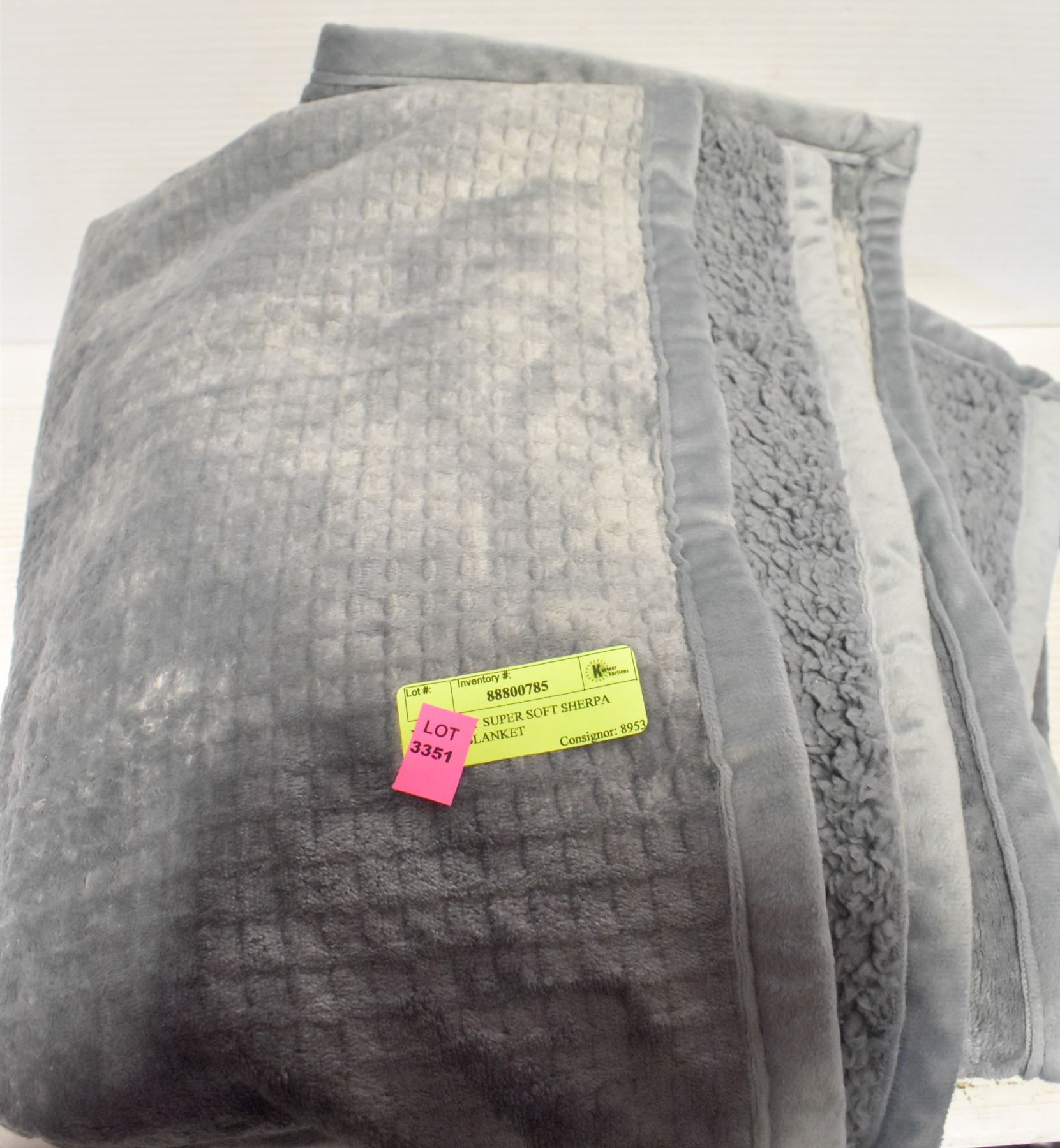 NEW GREY SUPER SOFT SHERPA THROW BLANKET