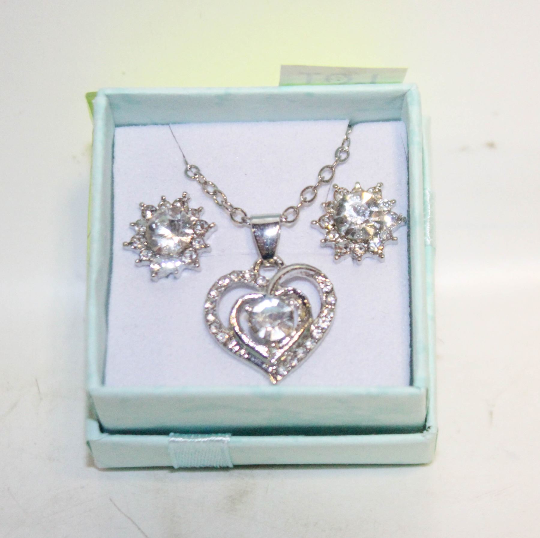 NEW HEART PENDANT NECKLACE+EARRING SET
