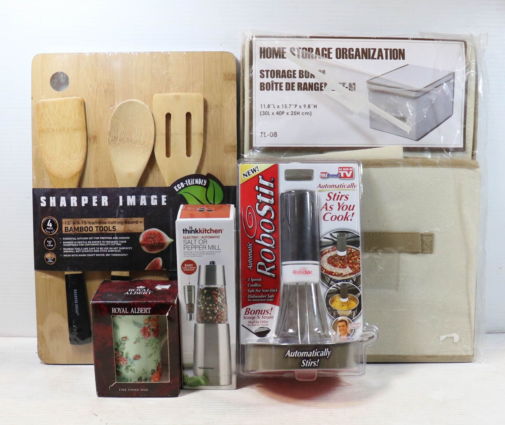 ELECTRIC SALT OR PEPPER SHAKER, AUTOMATIC ROBOSTIR, SHARPER IMAGE BAMBOO 4 PC SET, ROYAL ALBERT CHINA TEA/COFFEE MUG