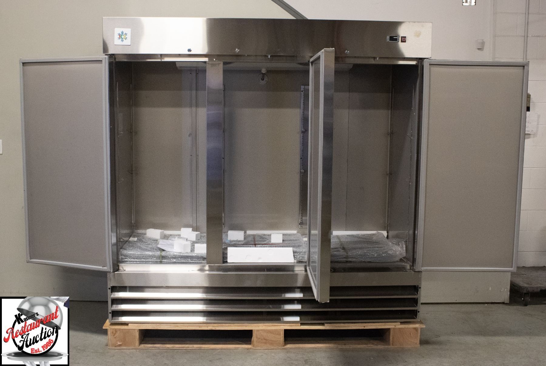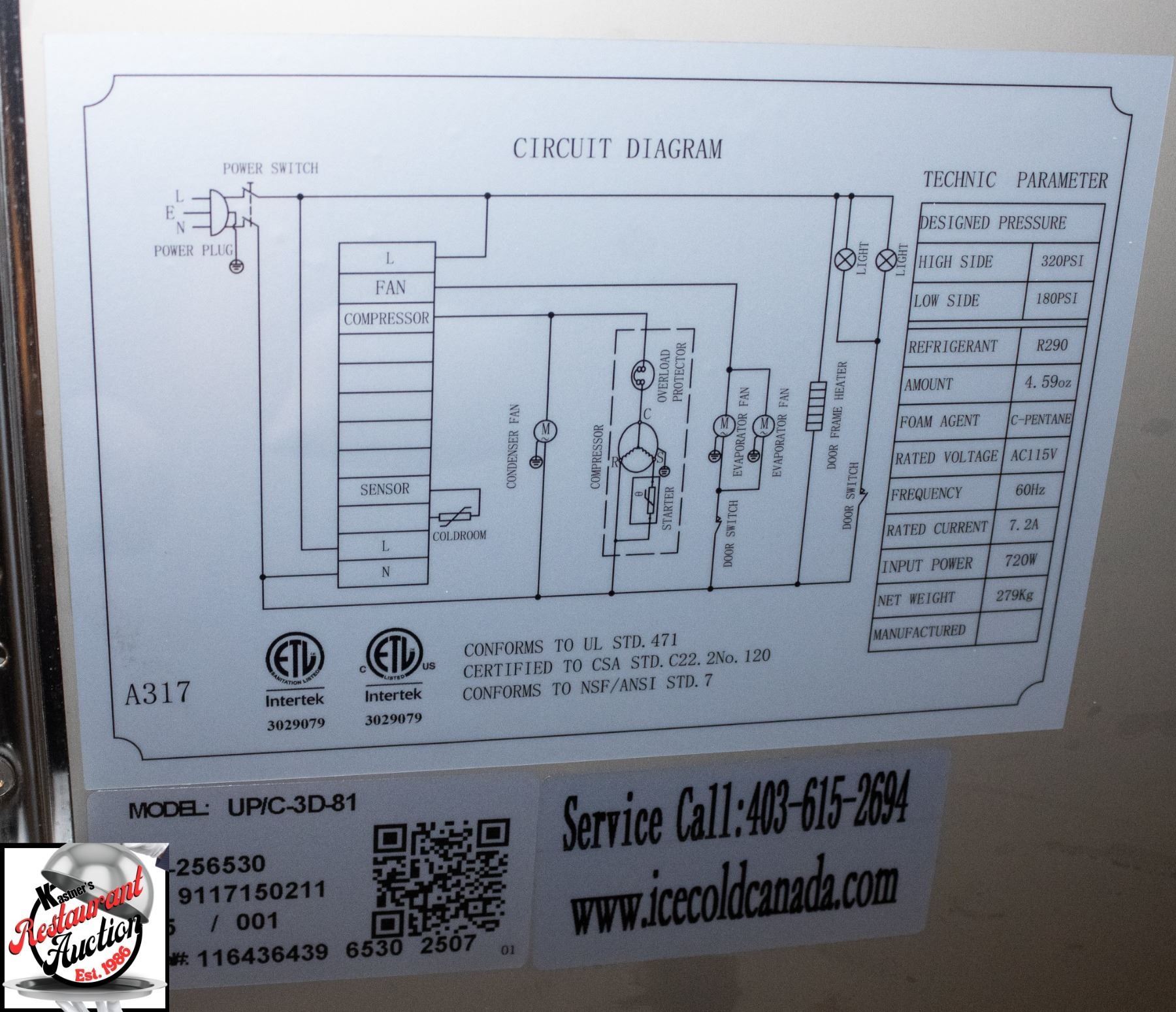 BOTTOM MOUNT COMPRESSOR, ROUNDED CORNERS FOR EASIER CLEANING, SELF CLOSING DOORS, HOLDS TEMPS BETWEEN 33°F - 41°F, ELECTRONIC CONTROL SYSTEM, ADJUSTABLE PVC COATED SHELFS, MODEL # UP/C-3D-81, REFRIGERANT R290, AC 115 VOLTS, 60 HZ, 7.2 AMPS, 720 WATTS, 279 KG, 80" X 33" X 84"