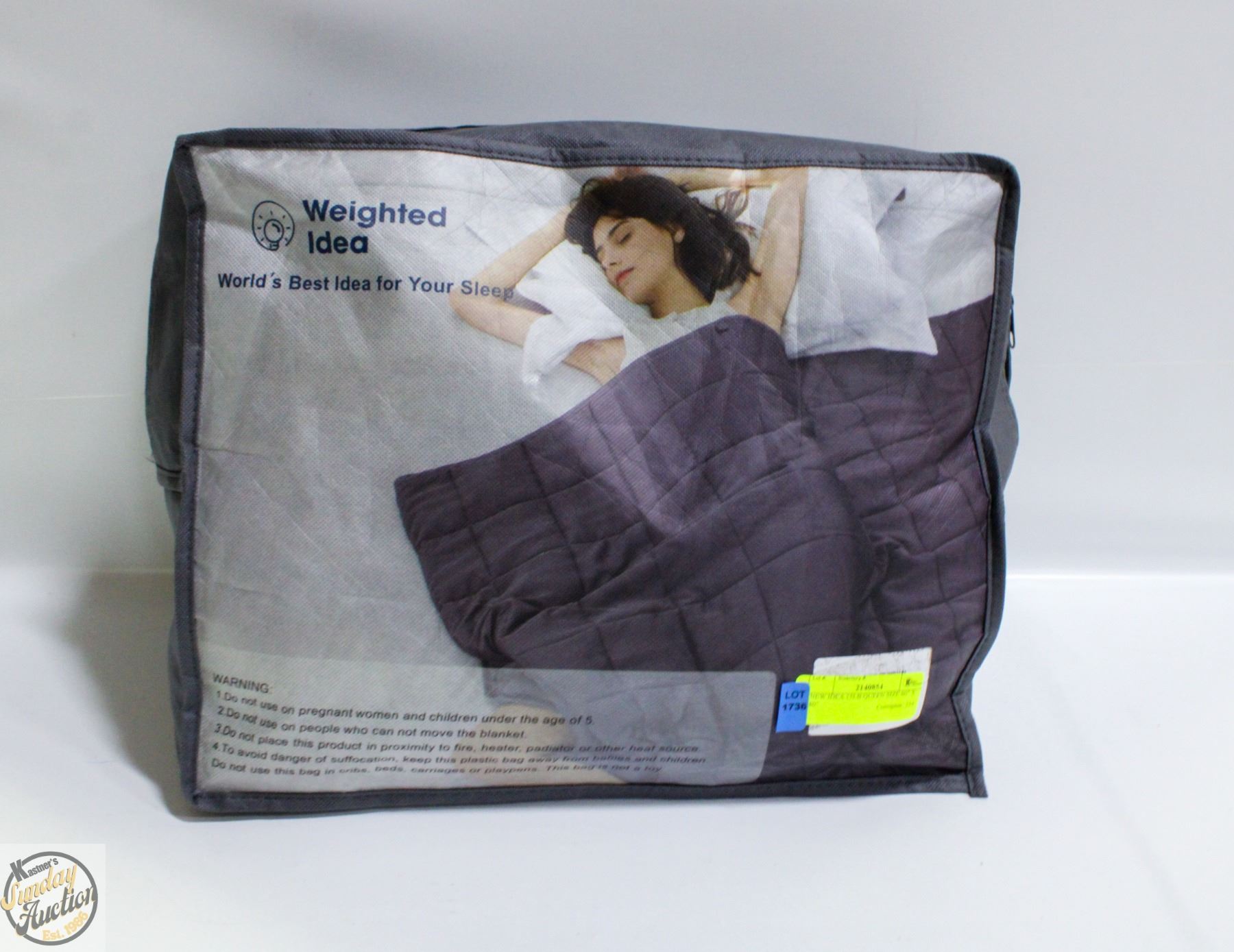 WEIGHTED BLANKET "DARK GREY" BREATHABLE BLANKET ALL SEASONS **ALL ITEMS MUST BE REMOVED BY 5PM SATURDAY, DECEMBER 13TH 2025. ALL REMAINING ITEMS WILL BE SUBJECT TO A $6.00 PER DAY STORAGE CHARGE. ANY ITEMS REMAINING AFTER MONDAY, DECEMBER 29TH 2025 WILL BE CONSIDERED FORFEITED. NO REFUNDS WILL BE ISSUED FOR FORFEITED ITEMS. TO SCHEDULE A PICK UP APPOINTMENT CLICK HERE