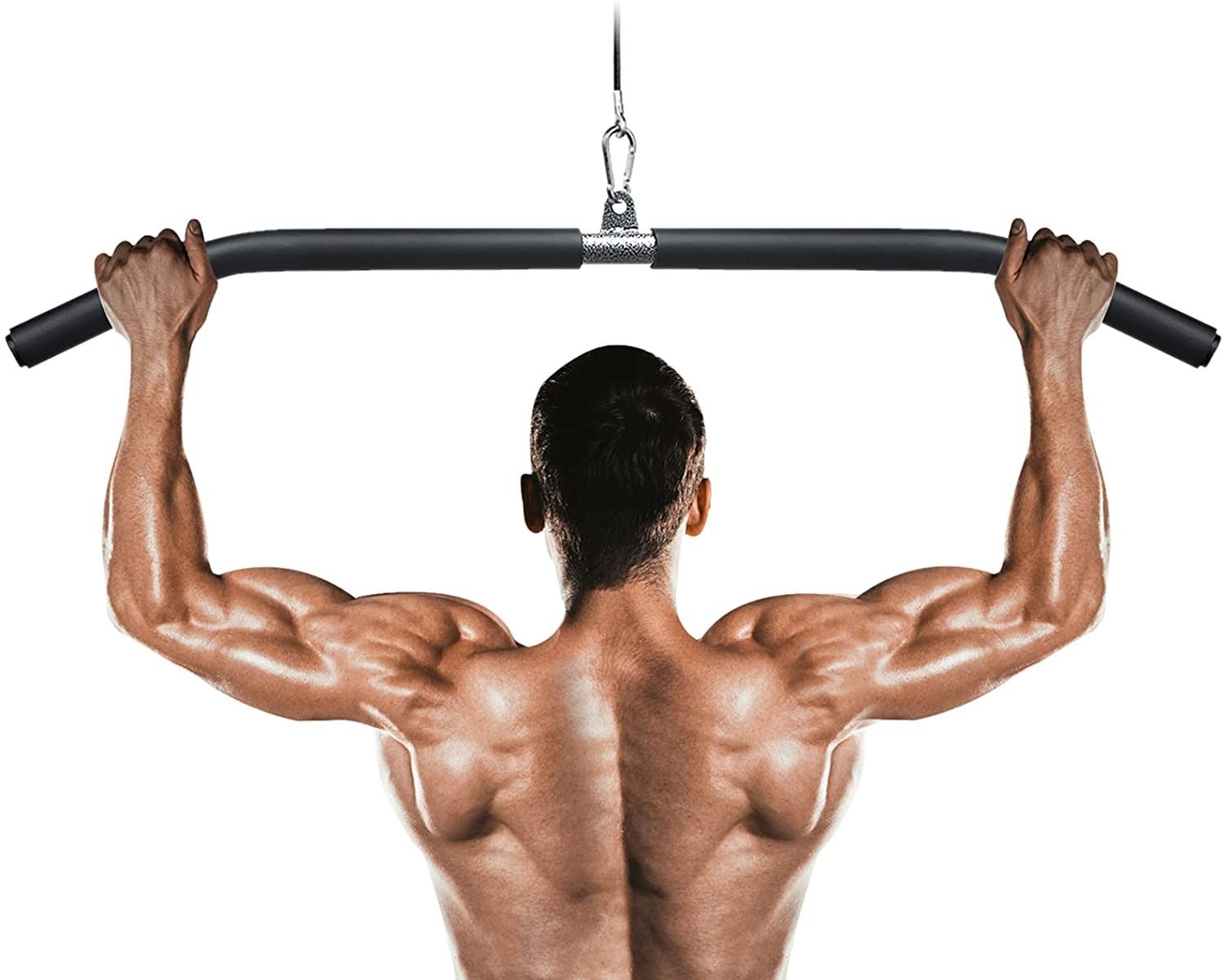 GYM AND FITNESS PULL DOWN BAR FOR PULLEY TYPE EXERCISE MACHINE, INCLUDES CARABINER ATTACHMENT, WIGHT LIFTING