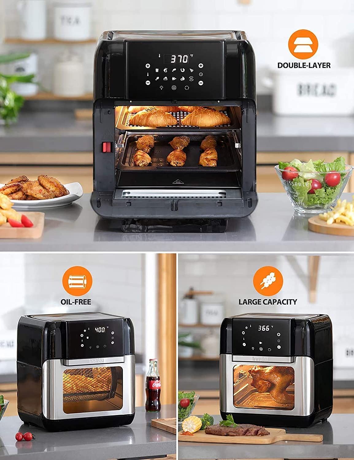 DEHYDRATOR, 10 IN 1 AIR FRYER TOASTER OVEN COMBO, COUNTERTOP, 6 ACCESSORIES, 32 + RECIPES, ETL CERTIFIED, 1500W, TESTED, ALL PARTS CONFIRMED, INSTRUCTION MANUAL AND RECIPE BOOK INCLUDED, AMZ SES