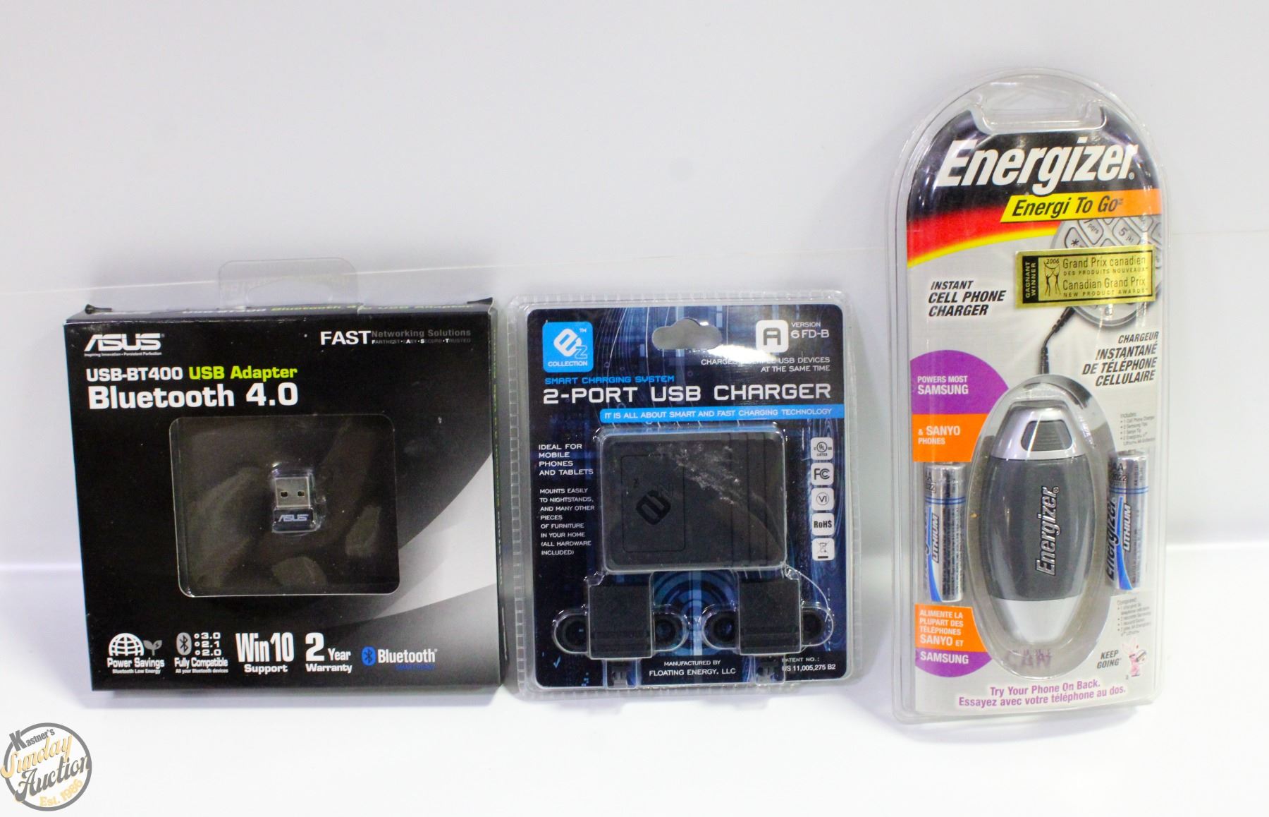 BLUETOOTH W/ICS INNOVATION EZ COLLECTION 2-PORT USB CHARGER & ENERGIZER ON THE GO CELL PHONE CHARGER **ALL ITEMS MUST BE REMOVED BY 5PM SATURDAY, DECEMBER 13TH 2025. ALL REMAINING ITEMS WILL BE SUBJECT TO A $6.00 PER DAY STORAGE CHARGE. ANY ITEMS REMAINING AFTER MONDAY, DECEMBER 29TH 2025 WILL BE CONSIDERED FORFEITED. NO REFUNDS WILL BE ISSUED FOR FORFEITED ITEMS. TO SCHEDULE A PICK UP APPOINTMENT CLICK HERE