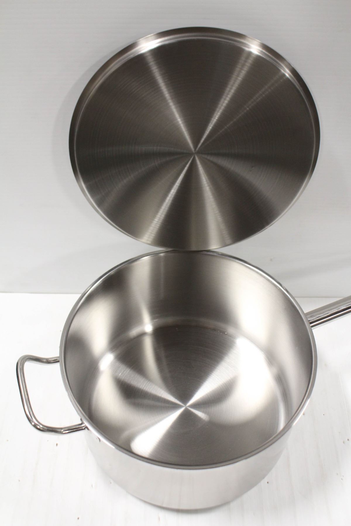STAINLESS STEEL SAUCE PAN W/ LID & HELPER HANDLE. 0.8MM THICKNESS. 3 PLY BOTTOM. INDUCTION READY. JR 47702