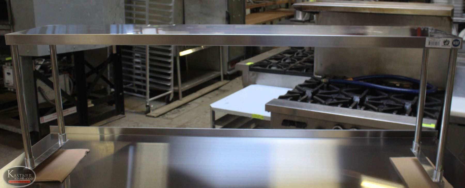 18 GAUGE, 430 STAINLESS STEEL, SINGLE TIER 19.5" LEGS. EASILY ATTACHES TO WORK TABLES