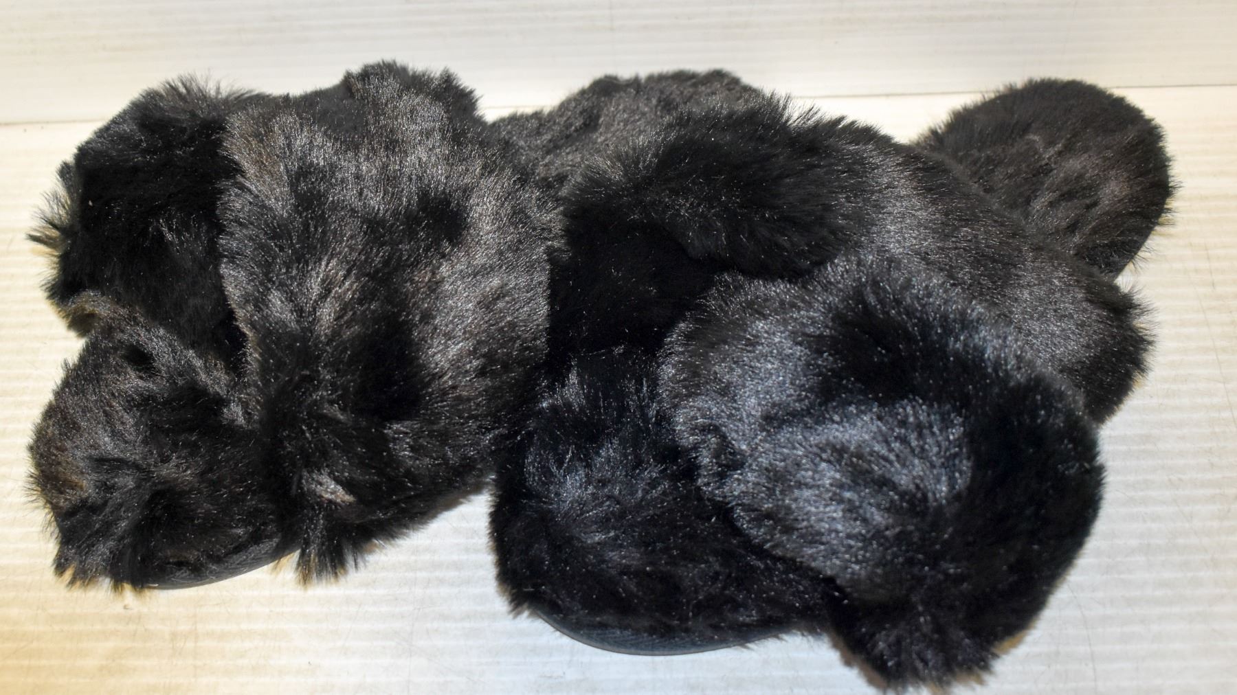 NEW LADIES FURRY BLACK SLIPPERS SIZE L