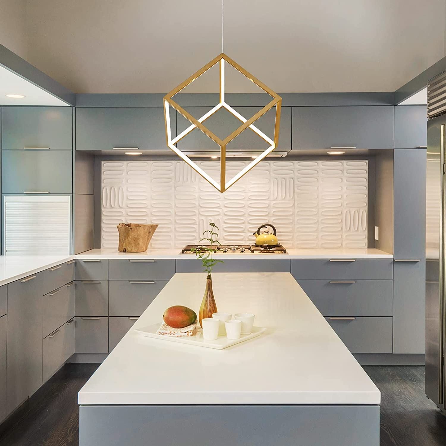 WITH ALL THE PARTS AND HARDWARE, INSTRUCTIONS INCLUDED, MODERN GOLD DESIGN, 12" CUBE WITH INNER LED LIGHT STRIPS, WARM WHITE 3000K LED