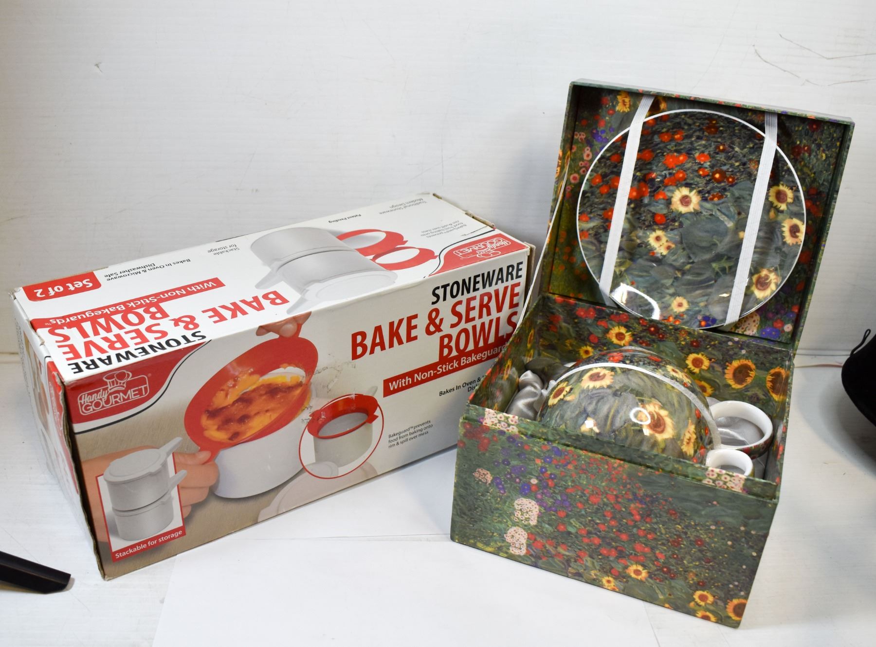 TEA FOR ONE SET W/STONEWARE BAKE & SERVE BOWLS NON-STICK BAKEGUARDS SET OF 2 #J86892