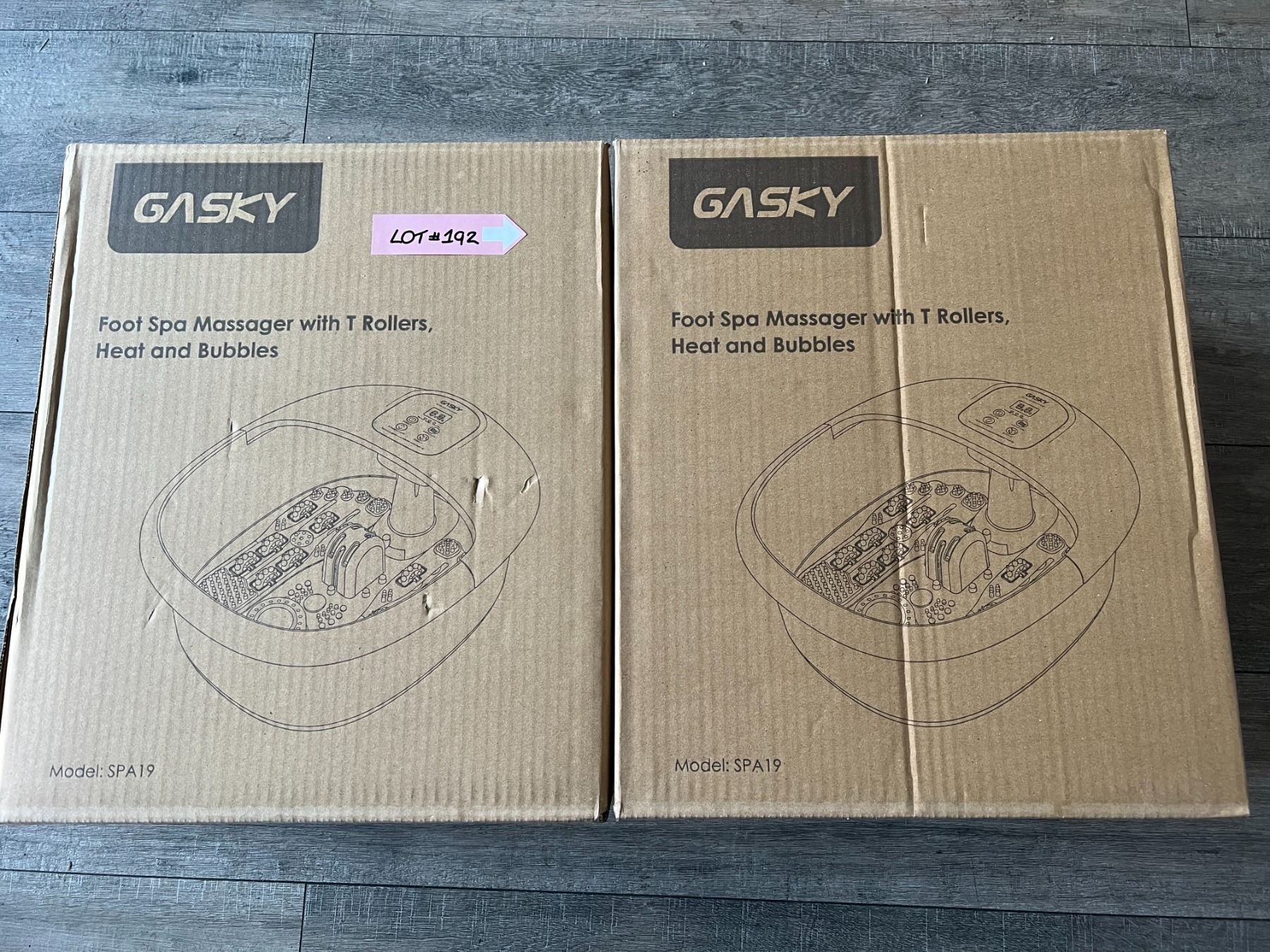 Lot of 2 brand new massaging heated foot spas with rollers and bubbles.