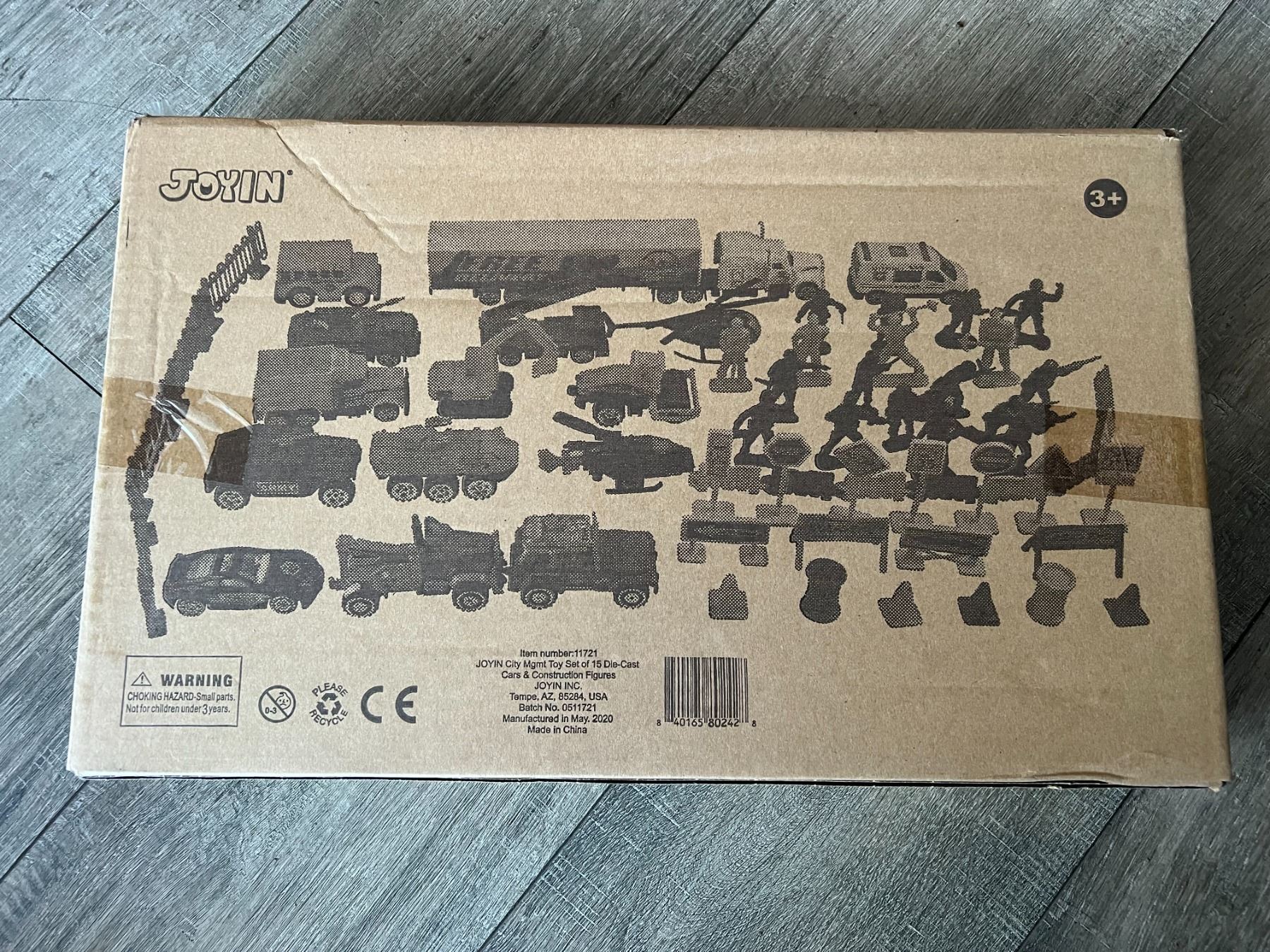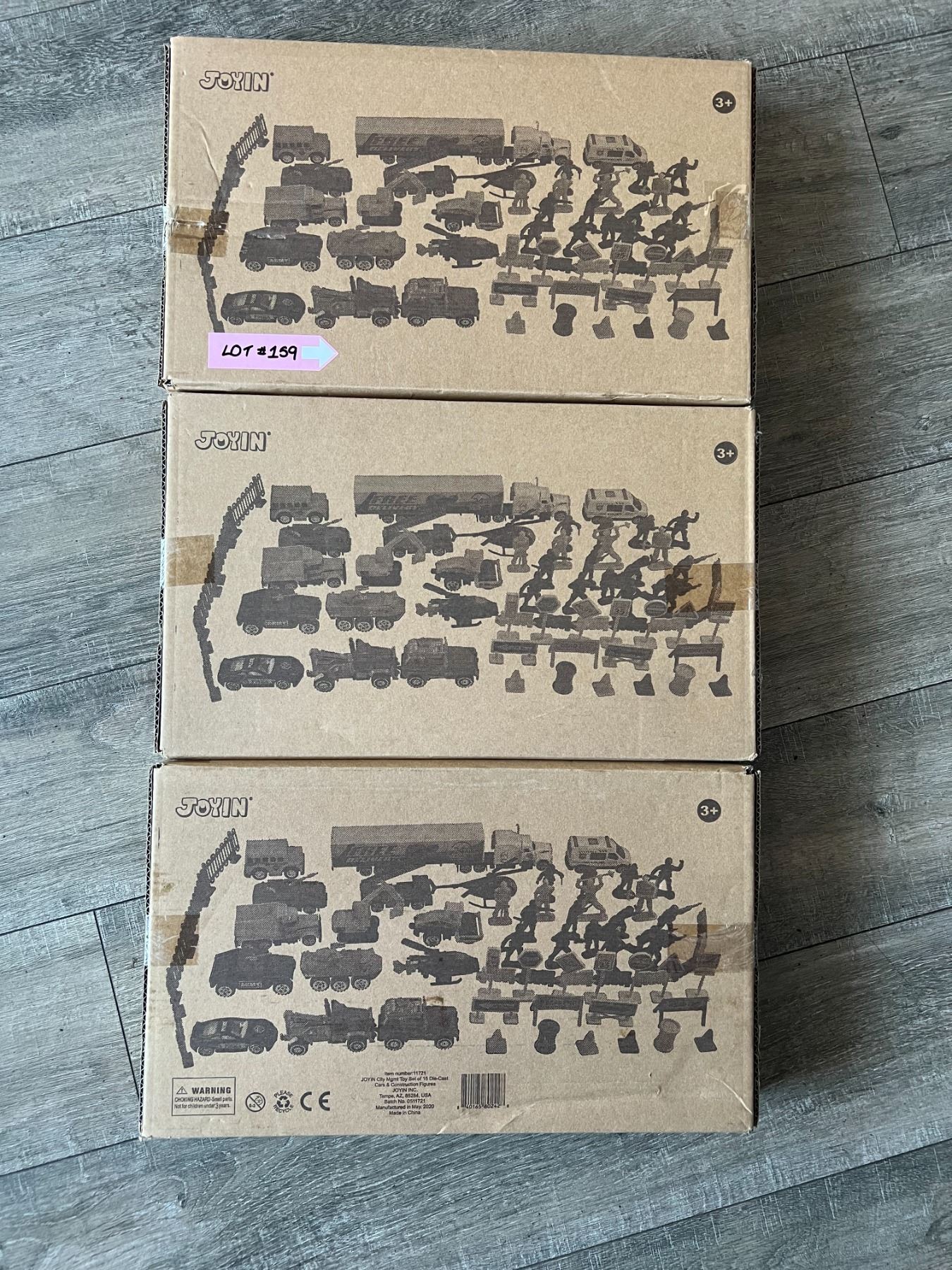 Lot of 3 boxes of city management kids diecast toy cars and figures.