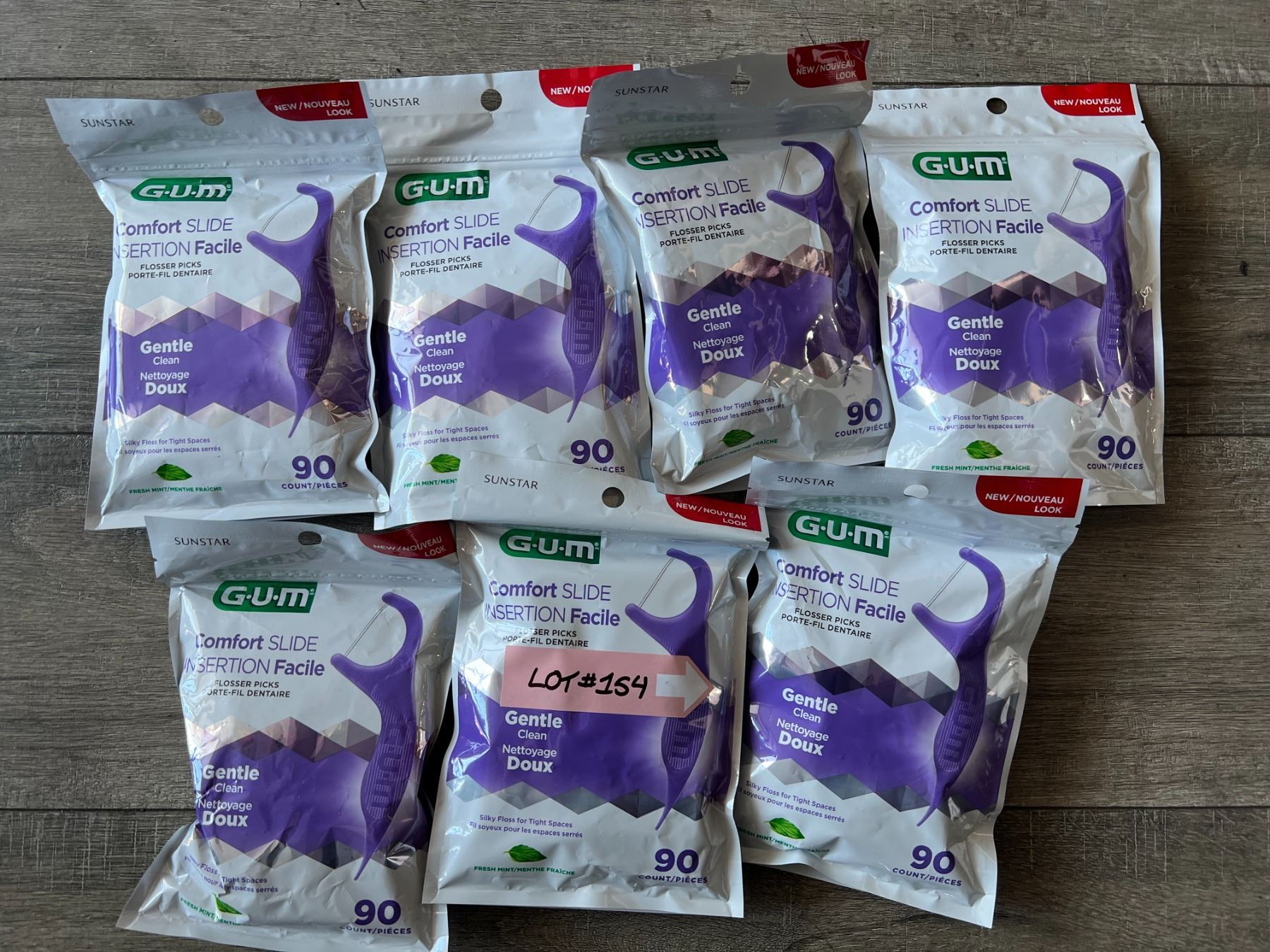 Lot of 7 packs of 90 count dental floss picks with comfort slide.