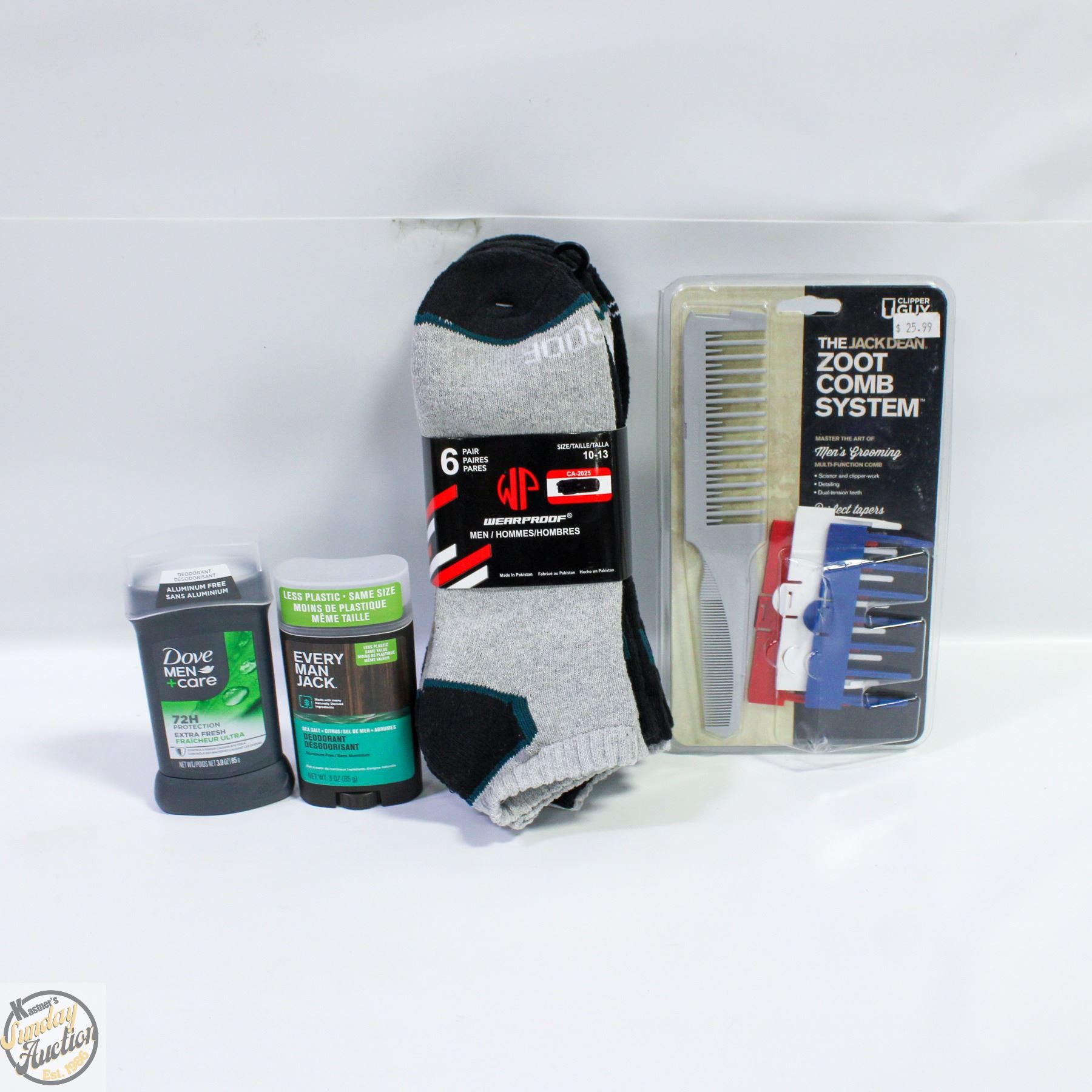 SOCKS SIZE 10-13, DOVE 72 HOUR DEODRANT & EVERYONE JACK ZOOT COMB SYSTEM **ALL ITEMS MUST BE REMOVED BY 5PM SATURDAY, FEBRUARY 28TH 2026. ALL REMAINING ITEMS WILL BE SUBJECT TO A $6.00 PER DAY STORAGE CHARGE. ANY ITEMS REMAINING AFTER MONDAY, MARCH 16TH, 2026 WILL BE CONSIDERED FORFEITED. NO REFUNDS WILL BE ISSUED FOR FORFEITED ITEMS. TO SCHEDULE A PICK UP APPOINTMENT CLICK HERE
