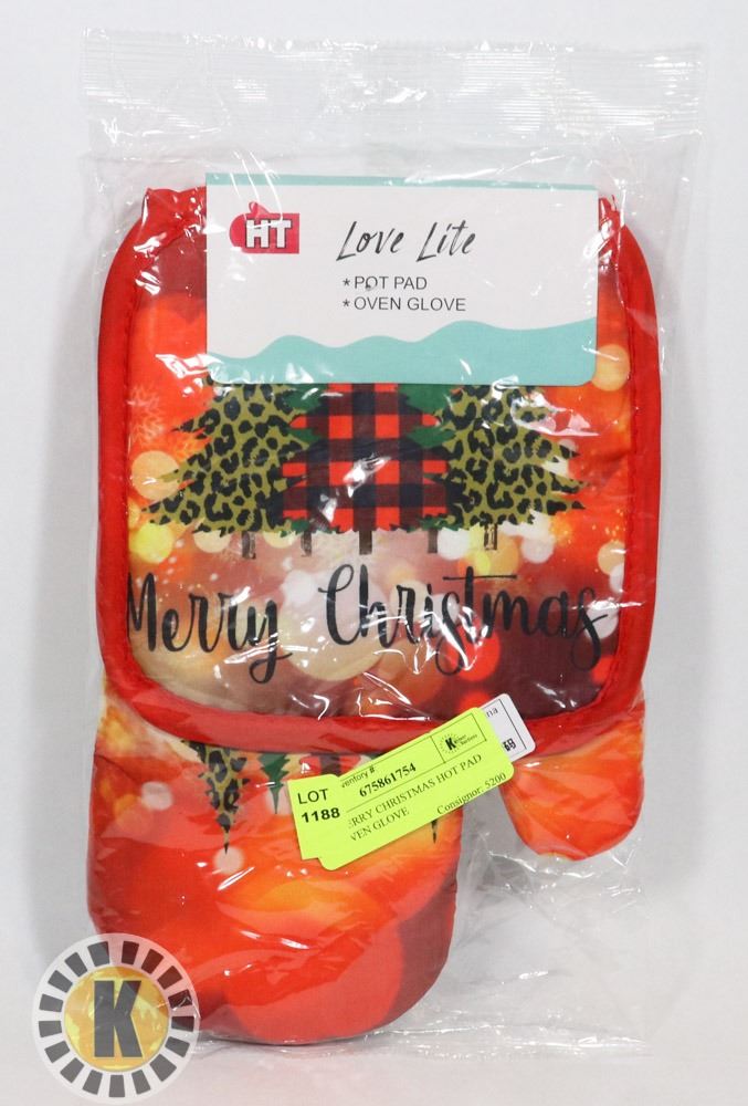 NEW MERRY CHRISTMAS HOT PAD AND OVEN GLOVE