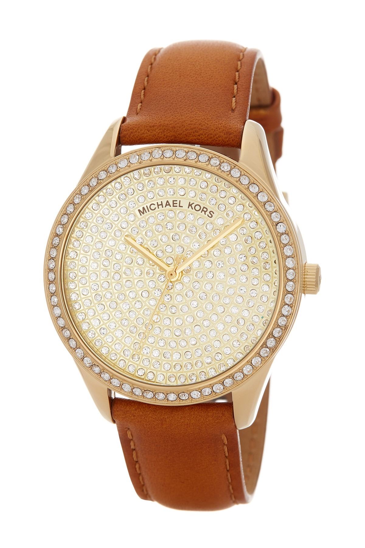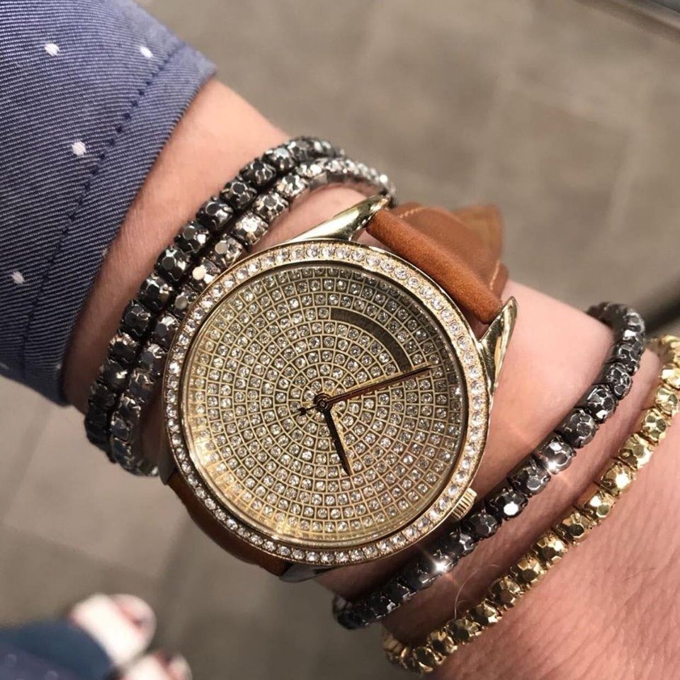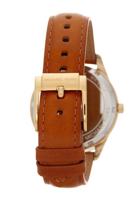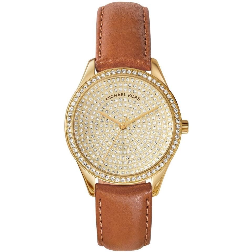 GOLD TONE BEZEL/BROWN LEATHER BAND WATCH. JEWELLERY.