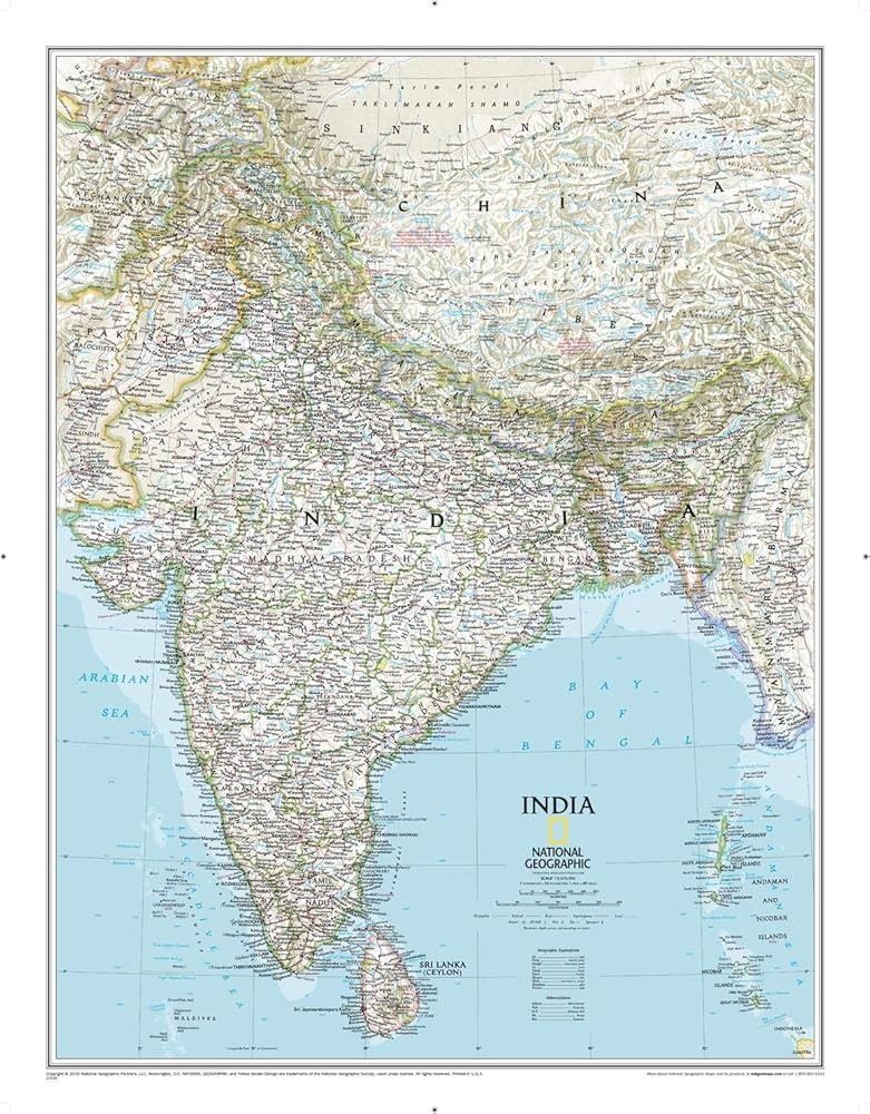 NEW NATIONAL GEOGRAPHIC INDIA WALL MAP 23.5X30.25"