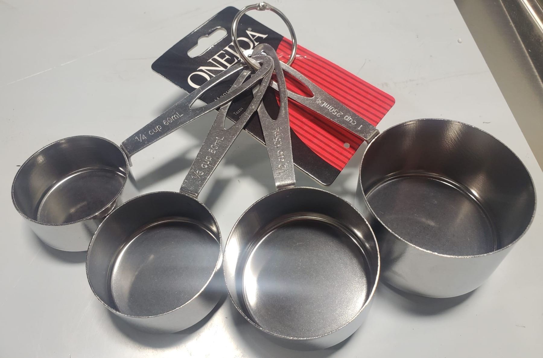 W/ LOOP. 1 CUP, 1/2 CUP, 1/3 CUP, 1/4 CUP.