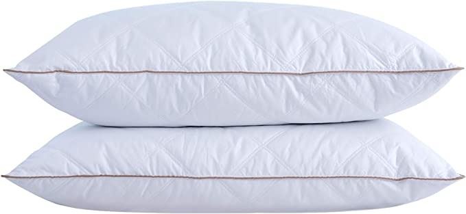 STANDARD SIZE PILLOW SET, 20 X 26", BREATHABLE, RDS CERTIFIED, GOLD TRIM, ANTI-BACTERIAL, HYPO-ALLERGENIC, AMZ SES **ALL ITEMS MUST BE REMOVED BY 5PM FRIDAY, SEPTEMBER 2ND, 2022. ALL REMAINING ITEMS WILL BE SUBJECT TO A $6.00 PER DAY STORAGE CHARGE. ANY ITEMS REMAINING AFTER FRIDAY, SEPTEMBER 2, 2022 WILL BE CONSIDERED FORFEITED. NO REFUNDS WILL BE ISSUED FOR FORFEITED ITEMS.** TO SCHEDULE A PICK UP APPOINTMENT. CLICK HERE