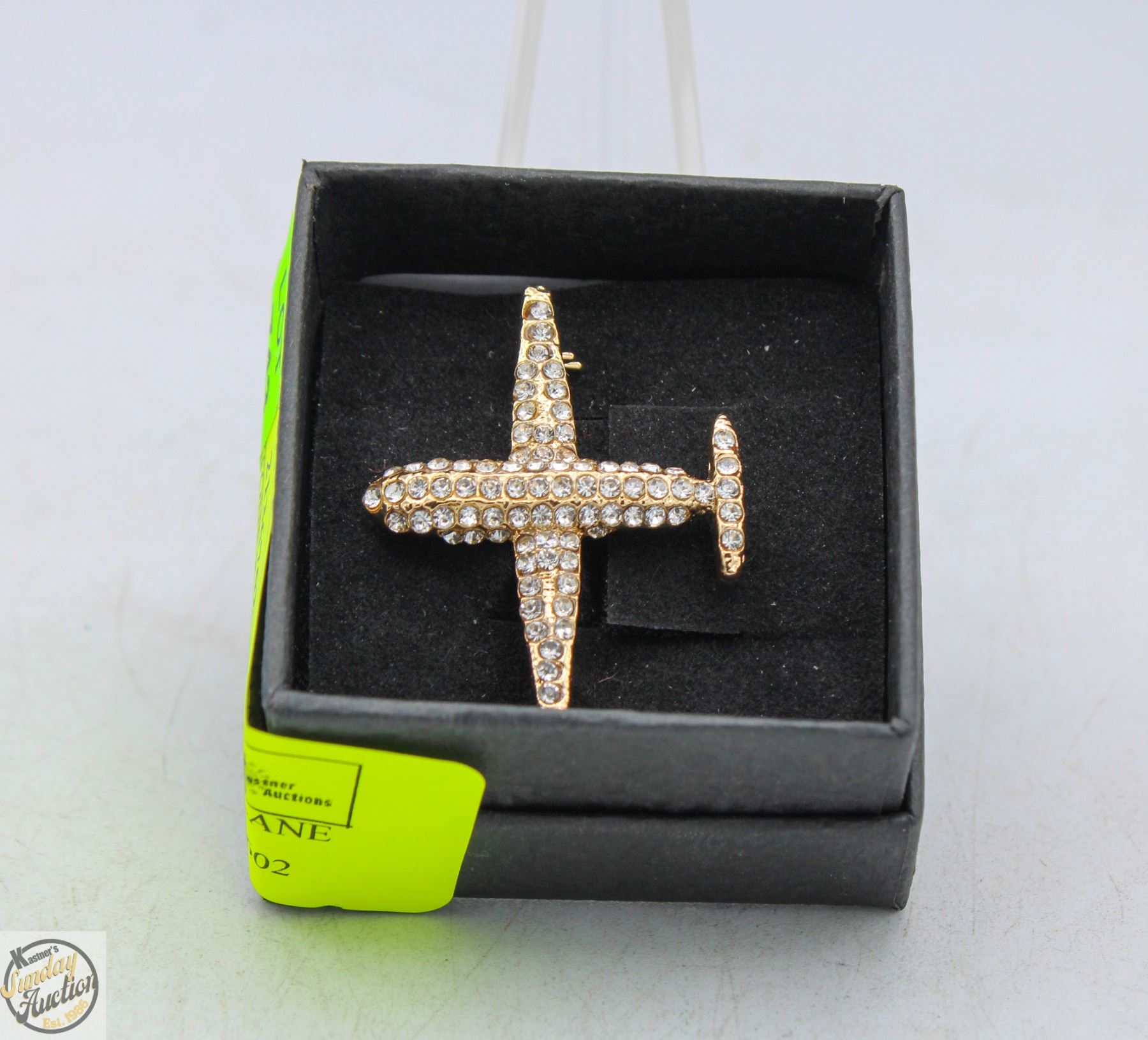NEW RHINSTONE FILLED AIRPLANE BROOCH