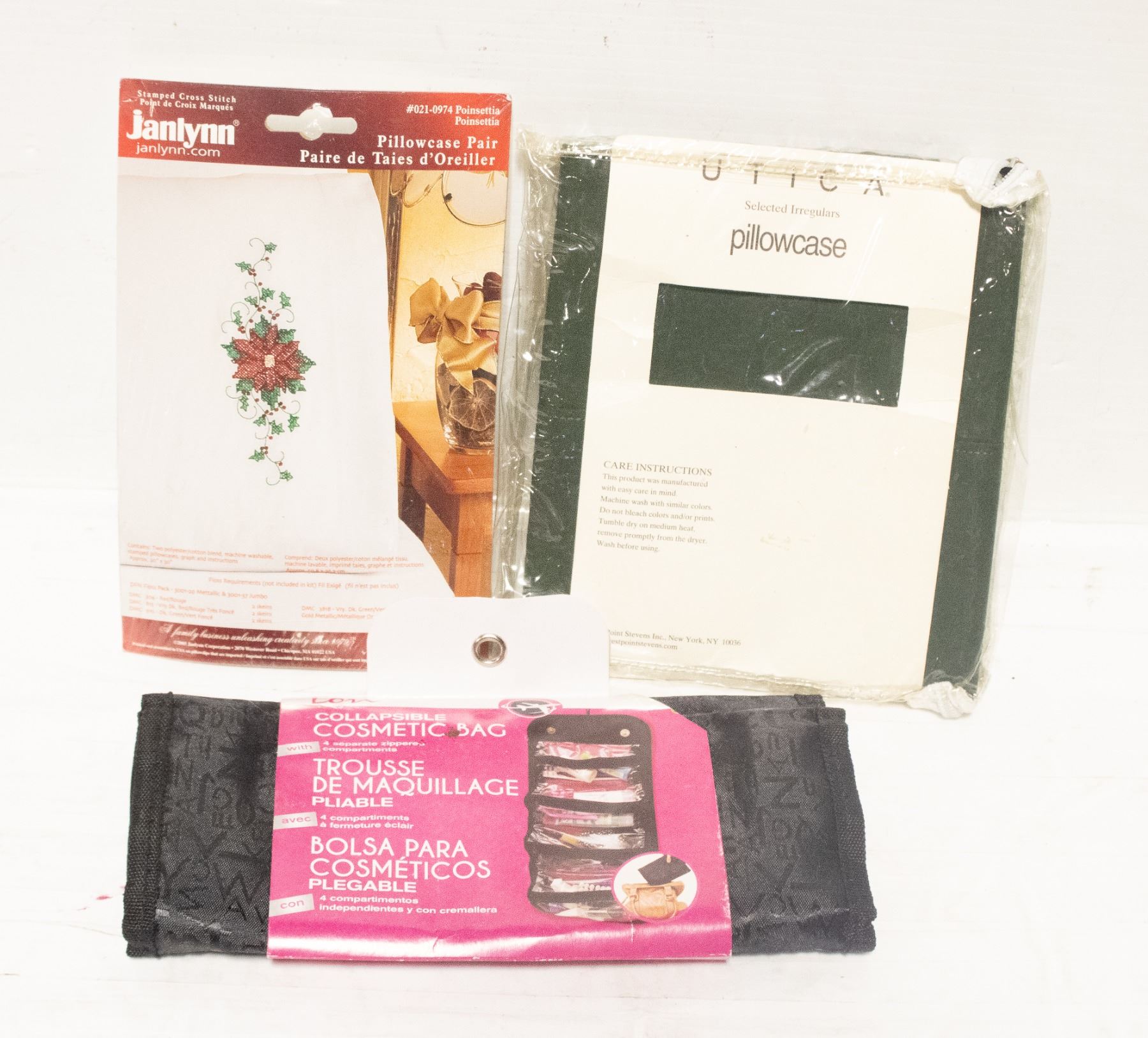 NEW SEALED 3 PILLOWCASES PLUS FOLDABLE MAKEUP BAG